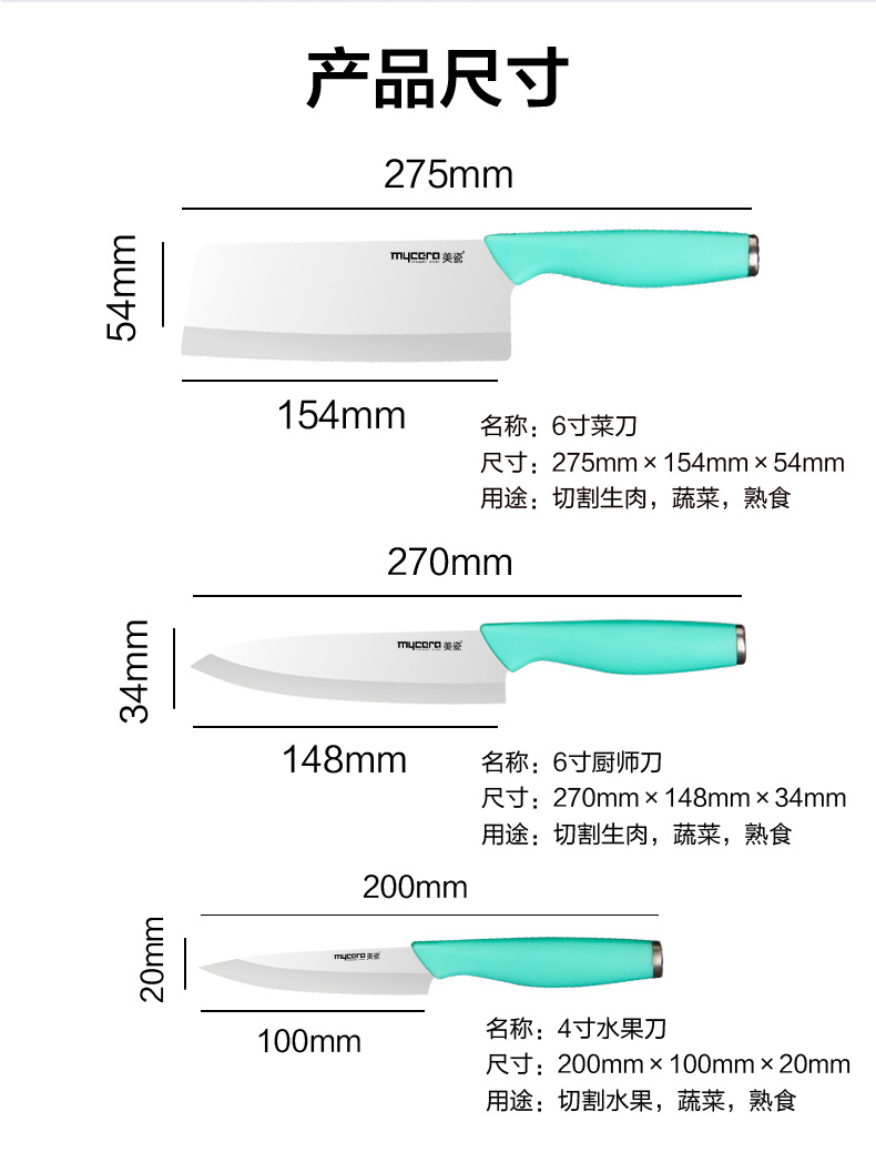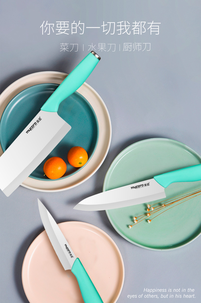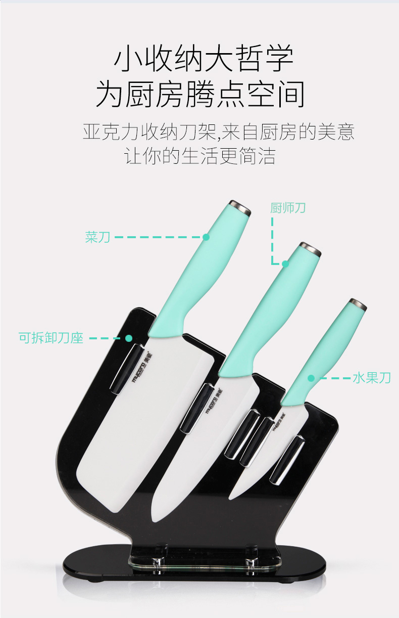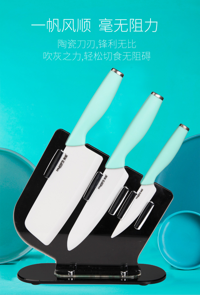 mycera美瓷陶瓷刀极利系列厨房套装刀具含刀座四件套礼盒GL04 淡蓝色