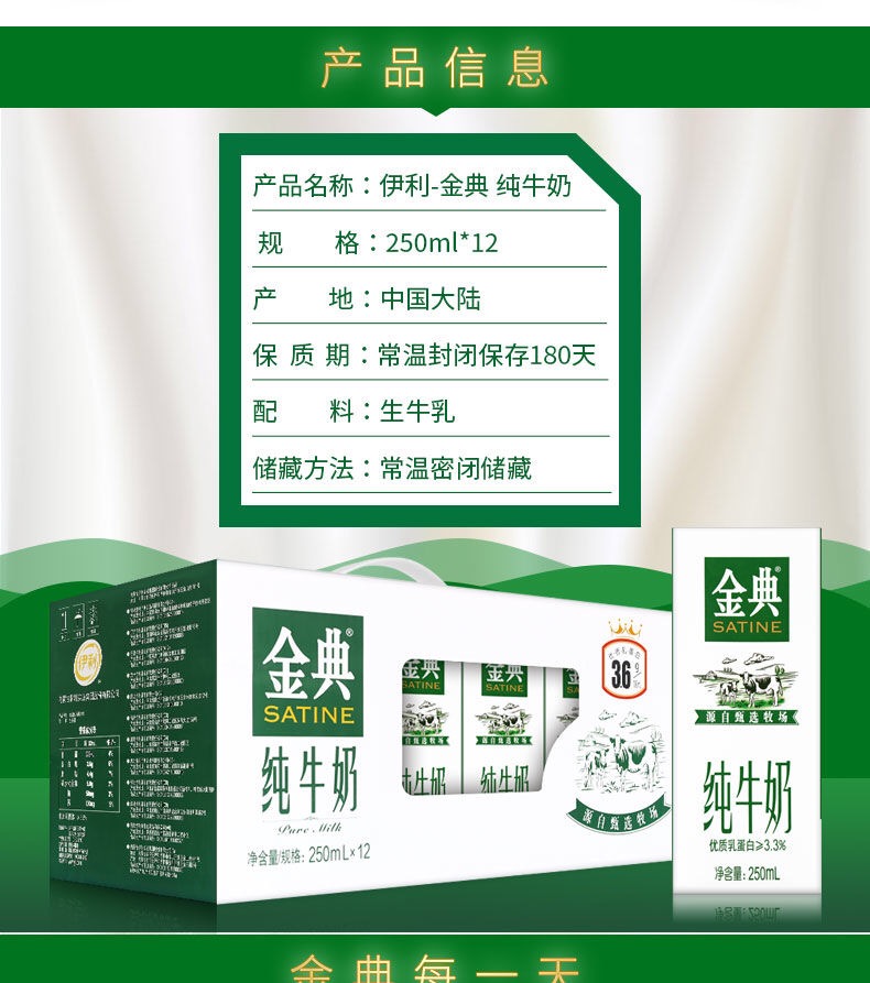 伊利金典 纯牛奶(两提装)250ml*12盒*2提/组 白色