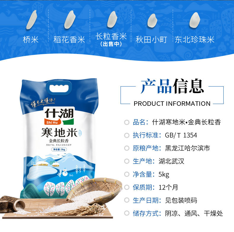 什湖(SHIHURICE) 寒地米金典长粒香5kg 当季新米(单位:袋) 蓝色