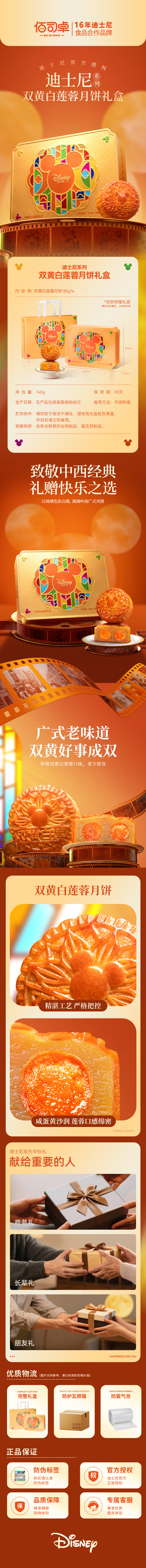 迪士尼(Disney) 双黄白莲蓉月饼礼盒 月饼 740g 金色(单位:盒)