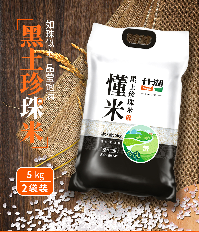什湖(SHIHURICE)【2袋装】懂米黑土珍珠米5kg*2 当季新米(单位:袋) 白色