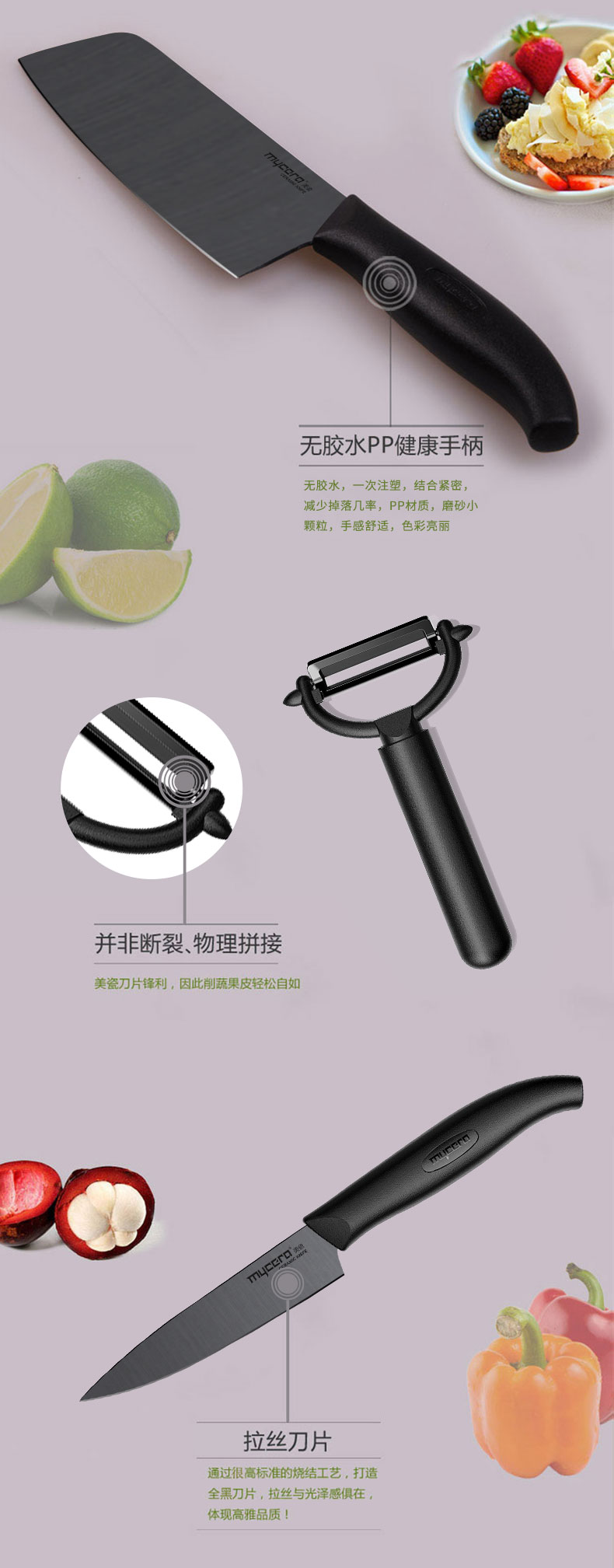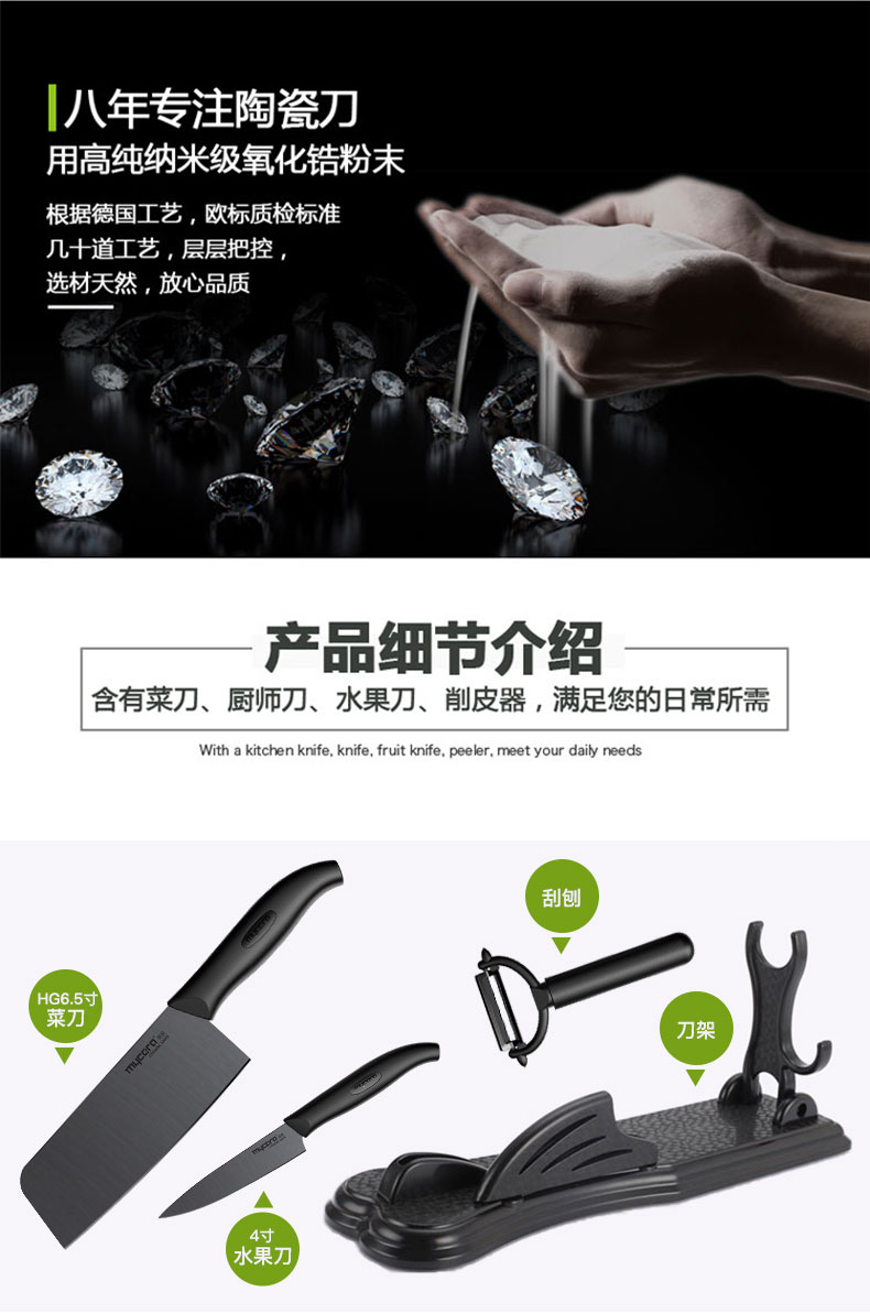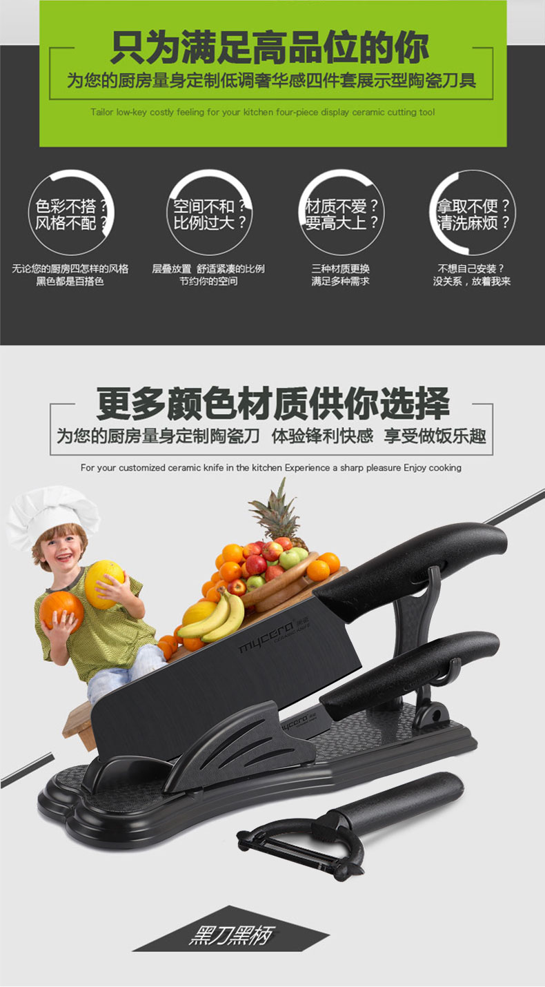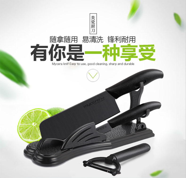 美瓷(mycera)陶瓷刀经典系列陶瓷厨房刀具四件套TES03B-B(单位:套) 黑色