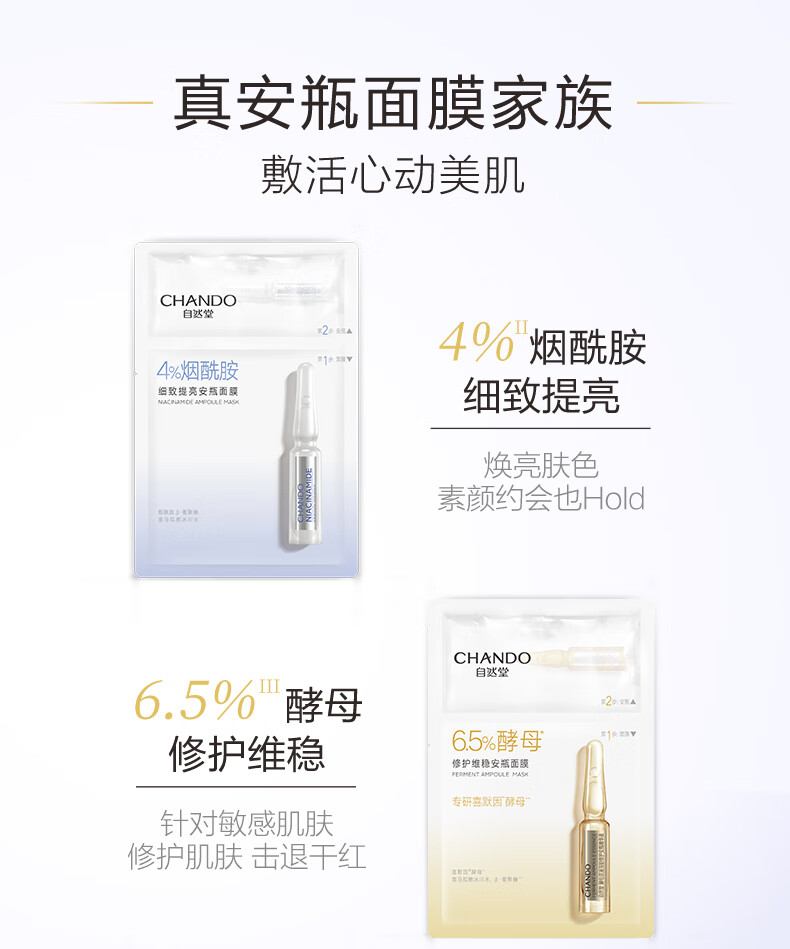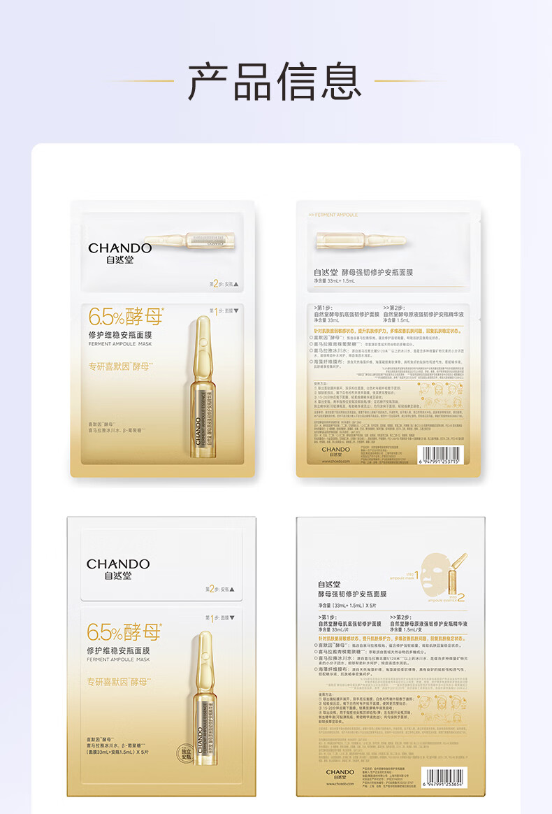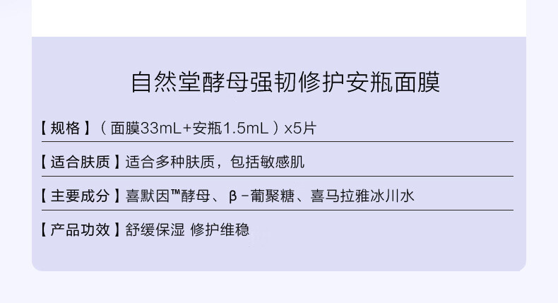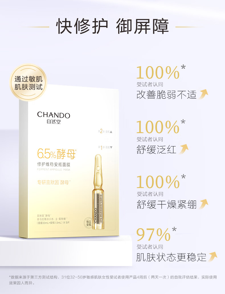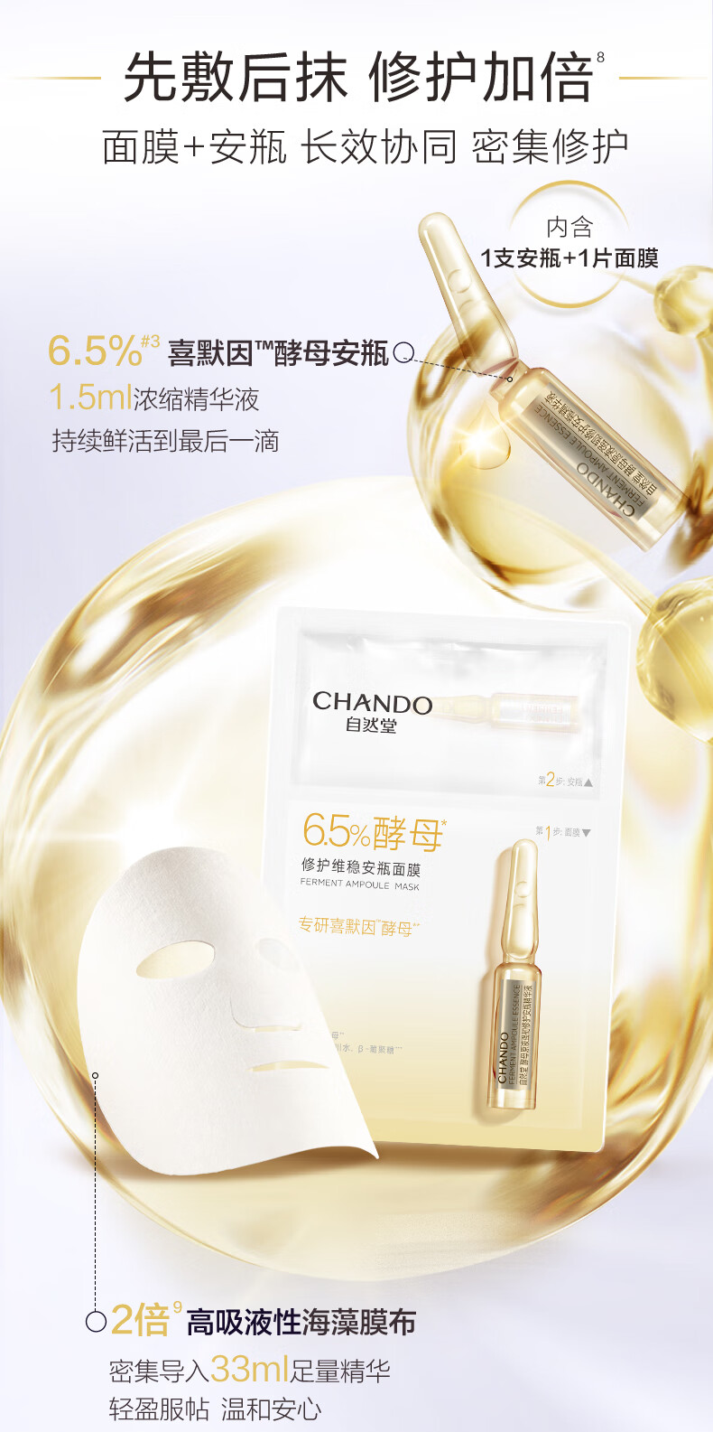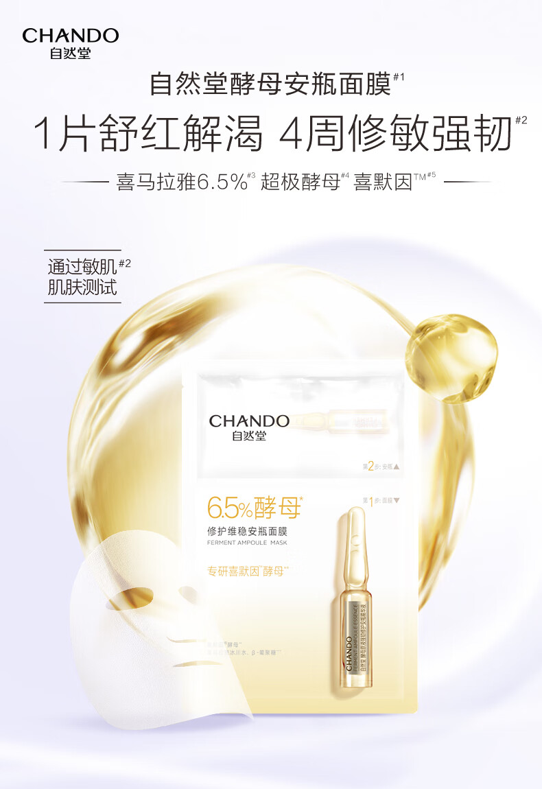 自然堂(CHANDO)酵母肌底修护维稳安瓶面膜(安瓶1.5mL+面膜33mL)*5PCS(单位:盒) 黄色