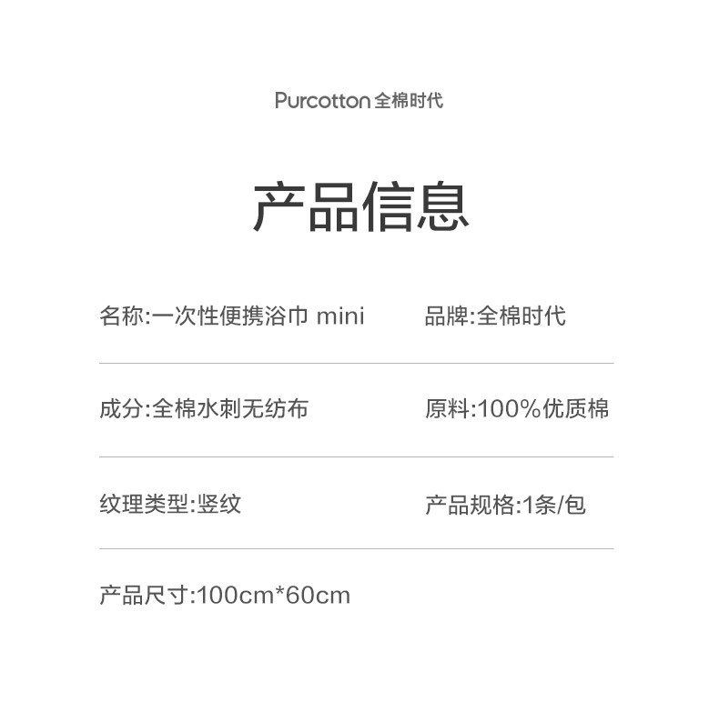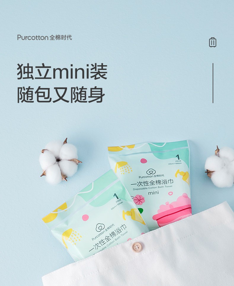全棉时代一次性全棉浴巾Mini60x100cm 1条/袋(单位:袋) 混色