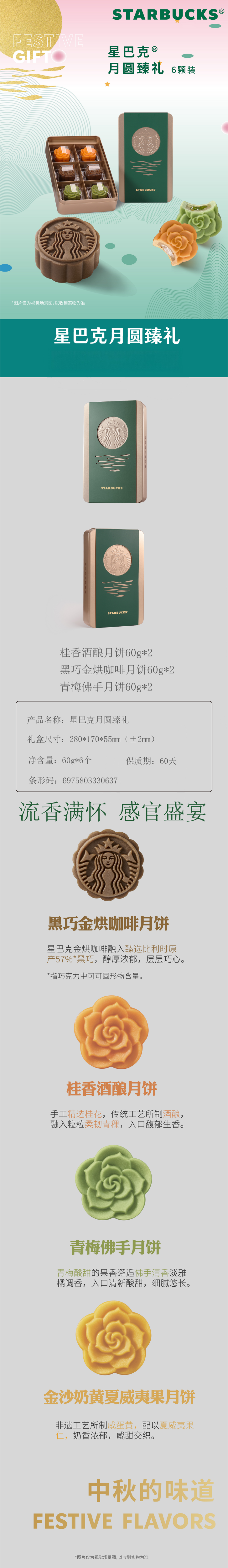 星巴克(Starbucks) 月圆臻礼318型 月饼 360克 雾雨绿(单位:盒)
