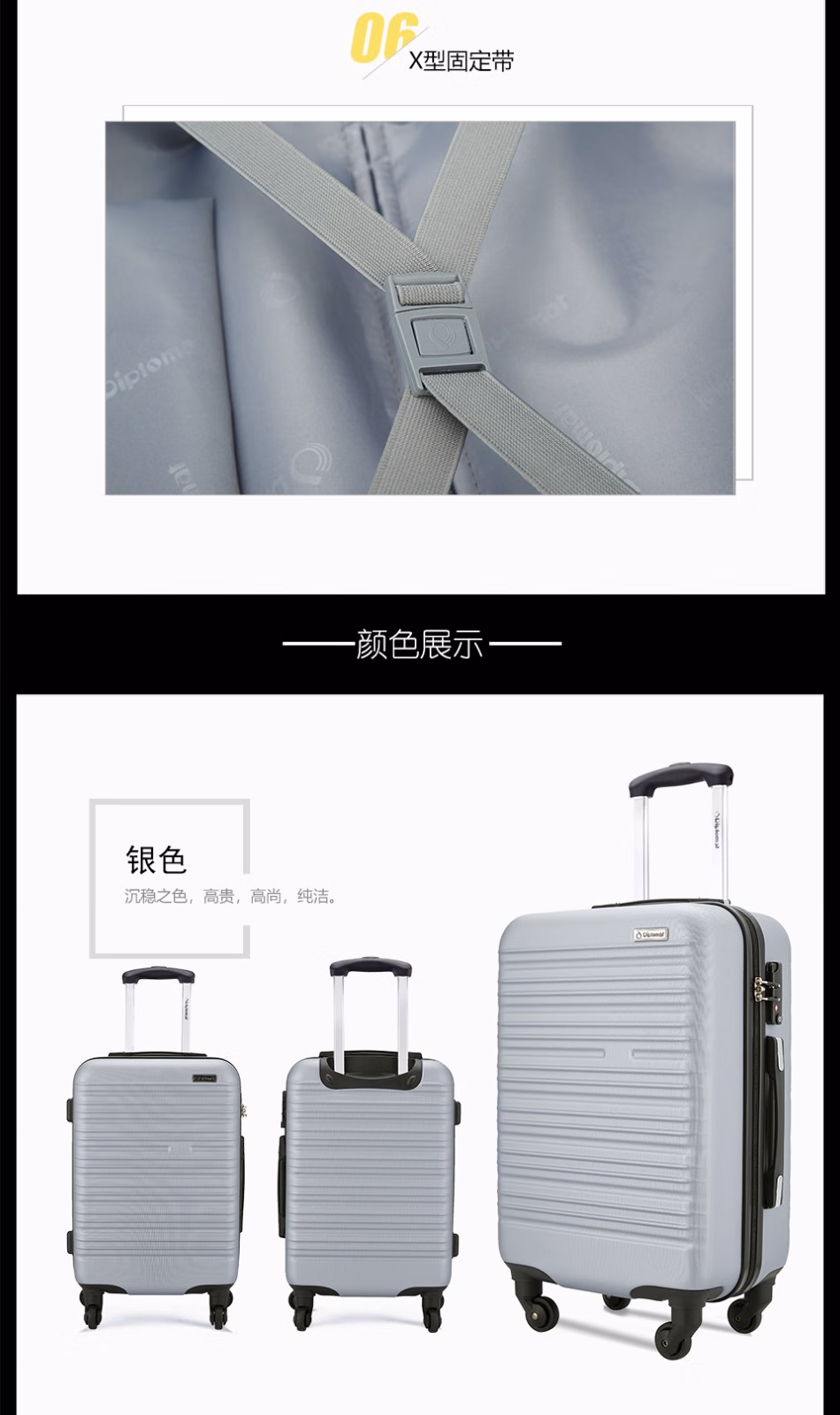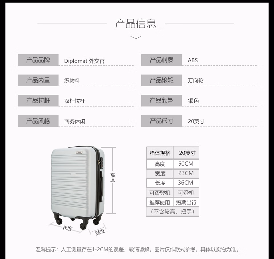 外交官(Diplomat) 拉杆箱ABS YH-6162-508 36*23*50CM 20寸 银色(单位:个)