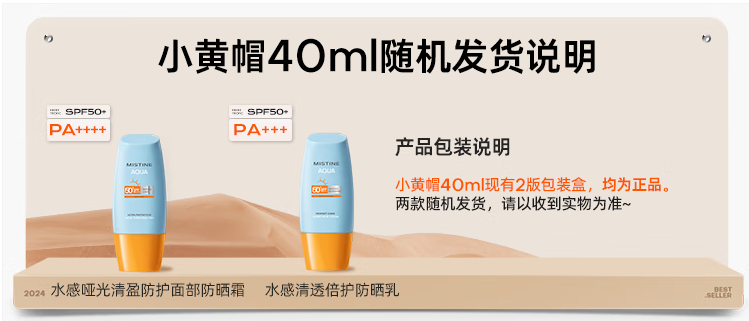 蜜丝婷(Mistine)水感哑光清盈防护面部防晒霜40ml (黄帽)*瓶 橙色