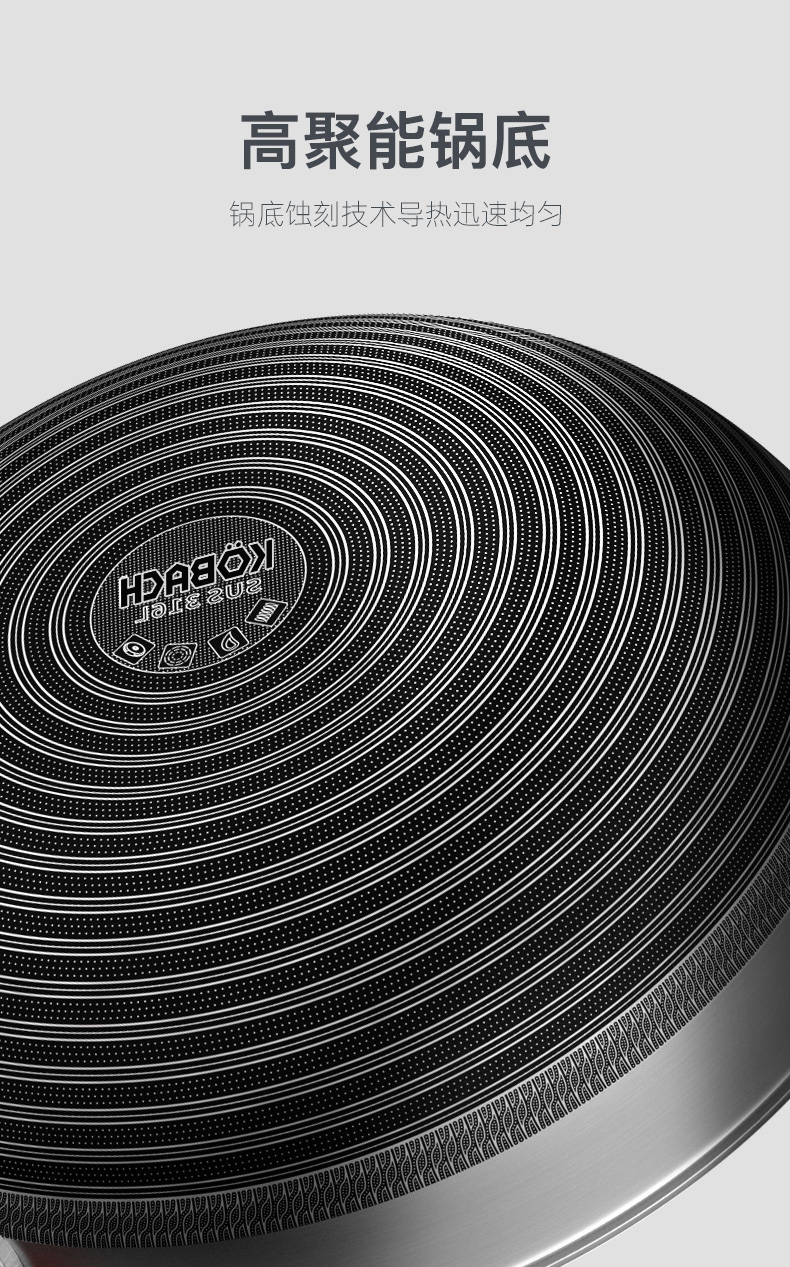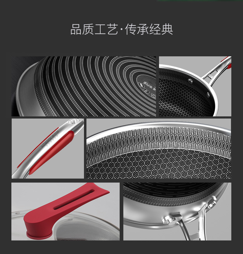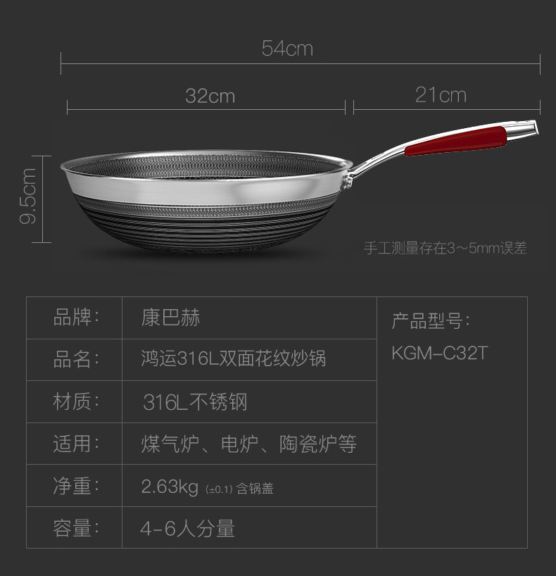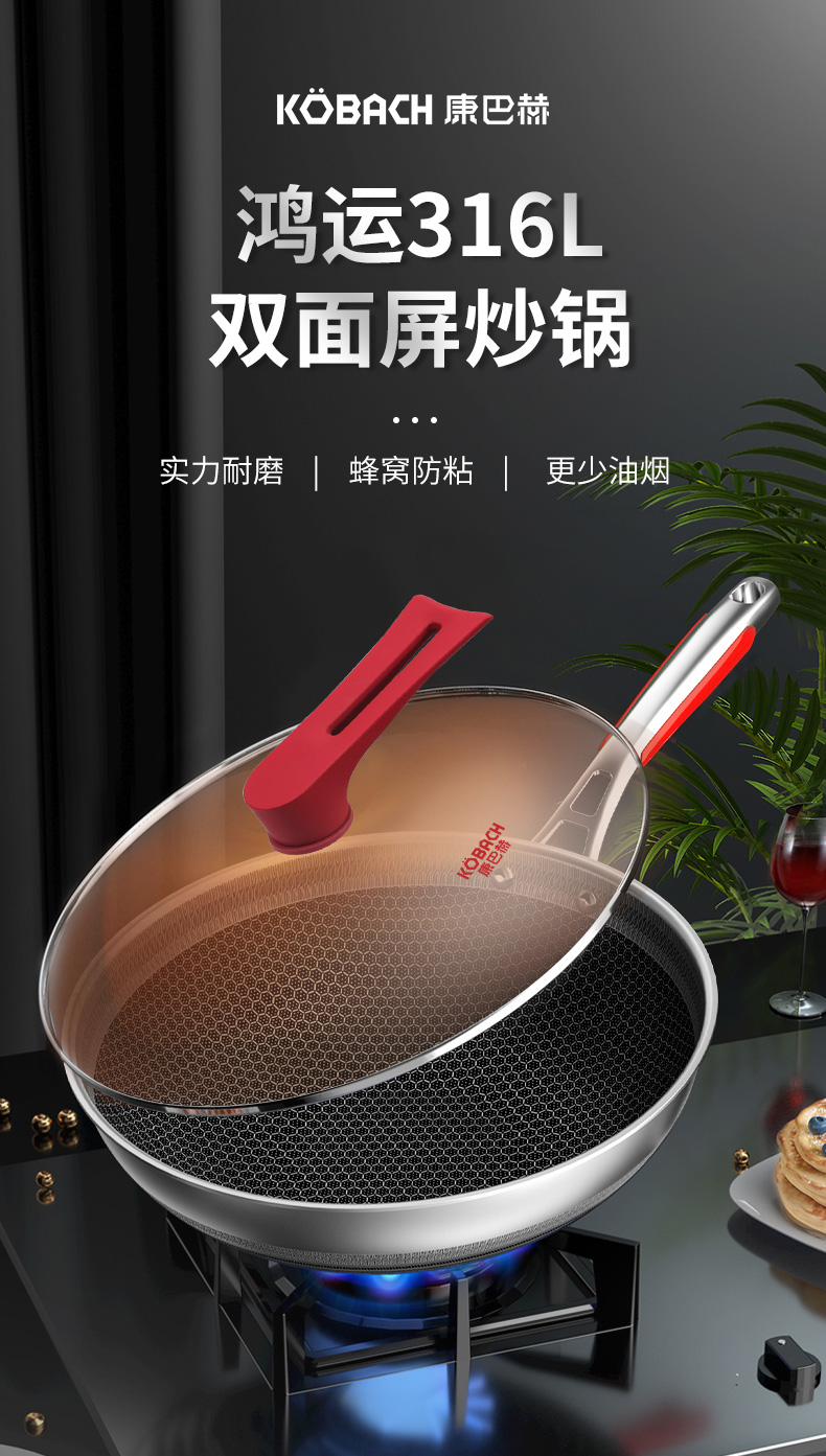 康巴赫鸿运316L双面屏蜂窝旗舰款炒锅KGM-C32T(单位:个) 不锈钢色
