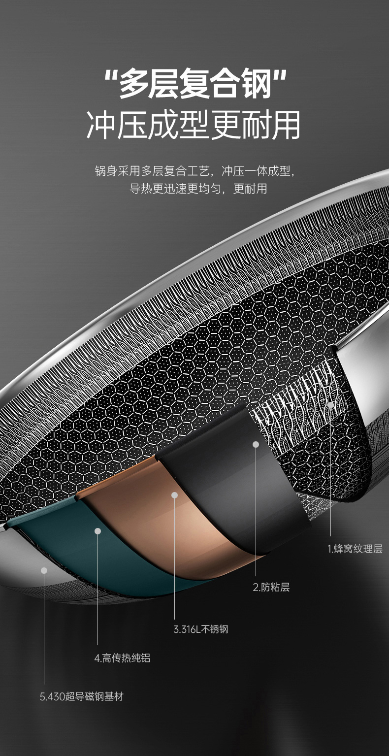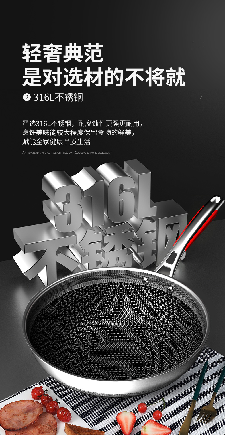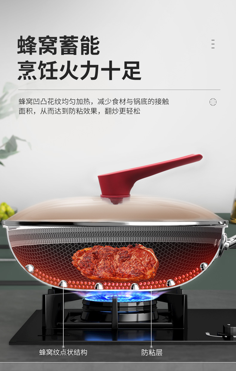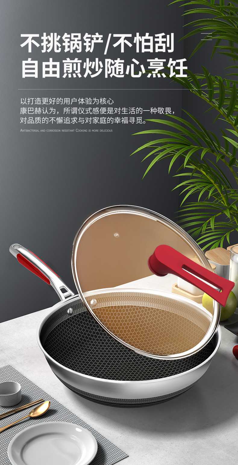 康巴赫鸿运316L双面屏蜂窝旗舰款炒锅KGM-C32T(单位:个) 不锈钢色