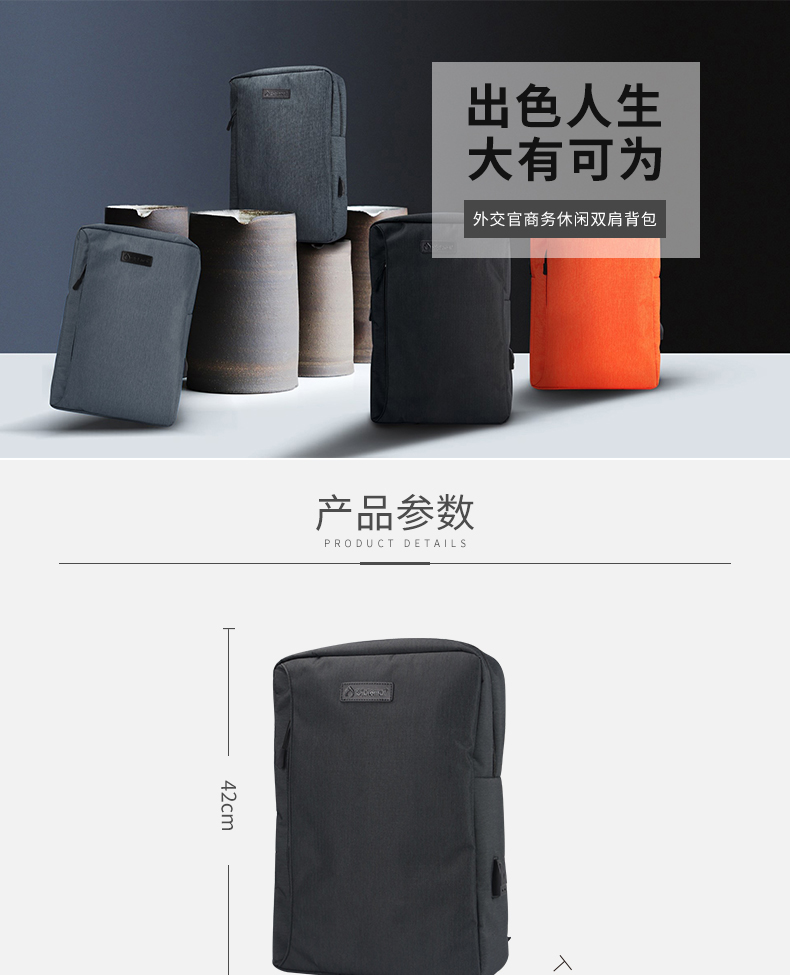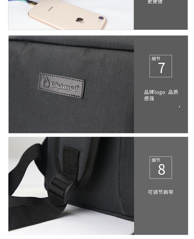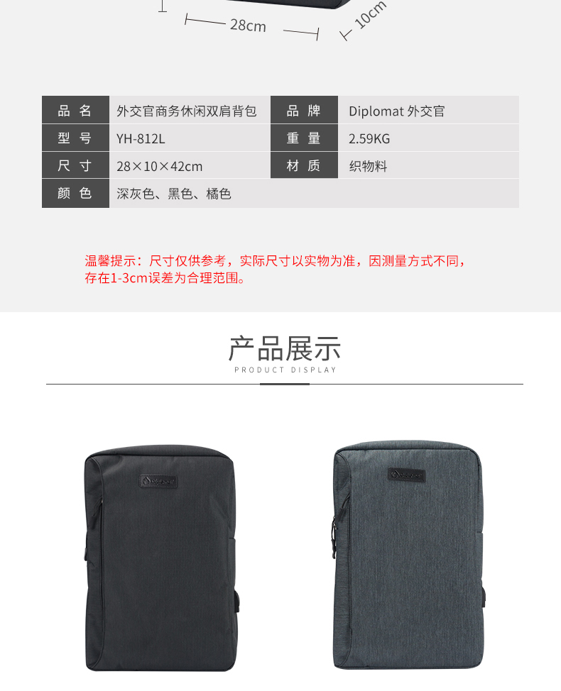 Diplomat外交官 时尚休闲双肩包背包YH-812L-101(个) 黑色