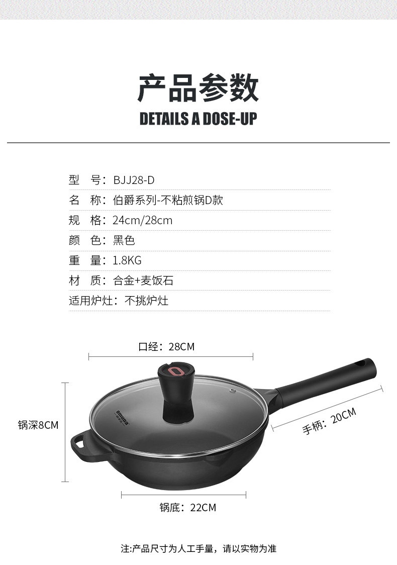 欧美达伯爵系列-不粘煎锅D款28cm BJJ28-D 曜石黑
