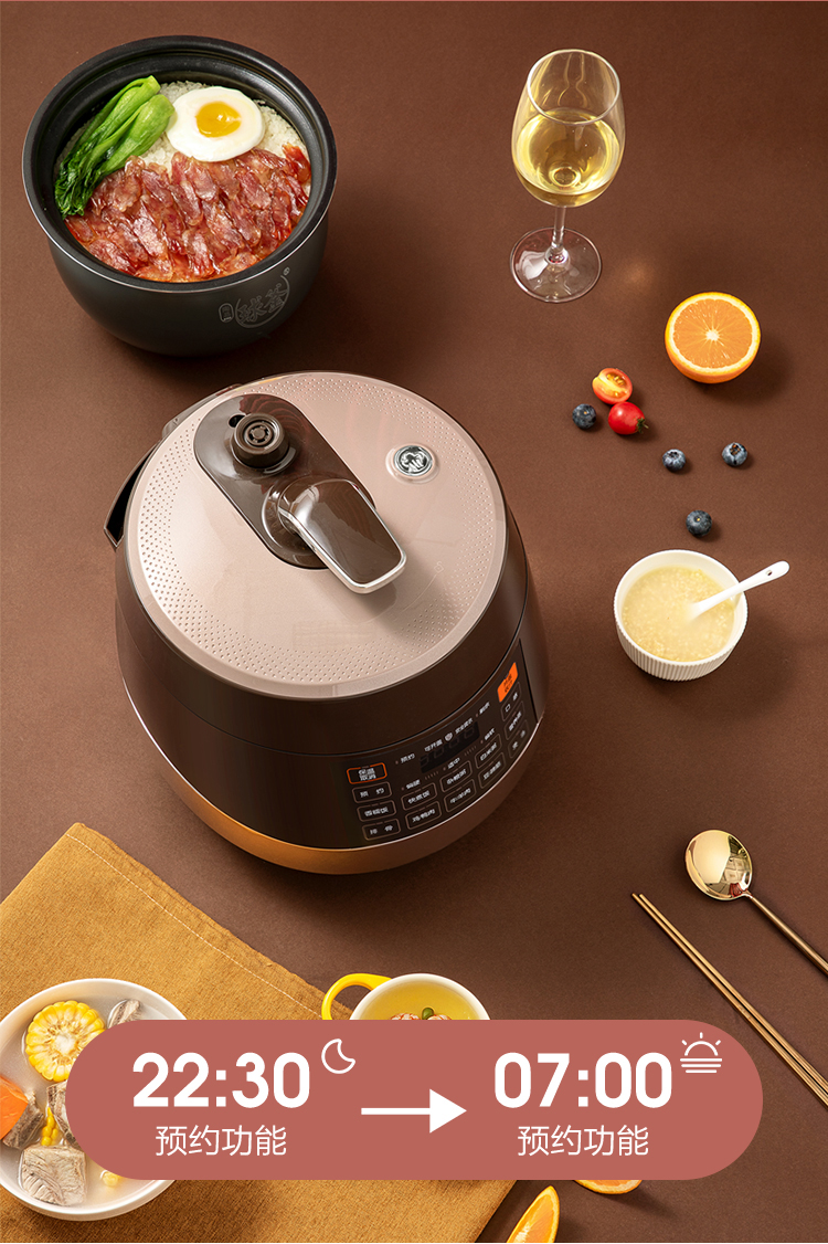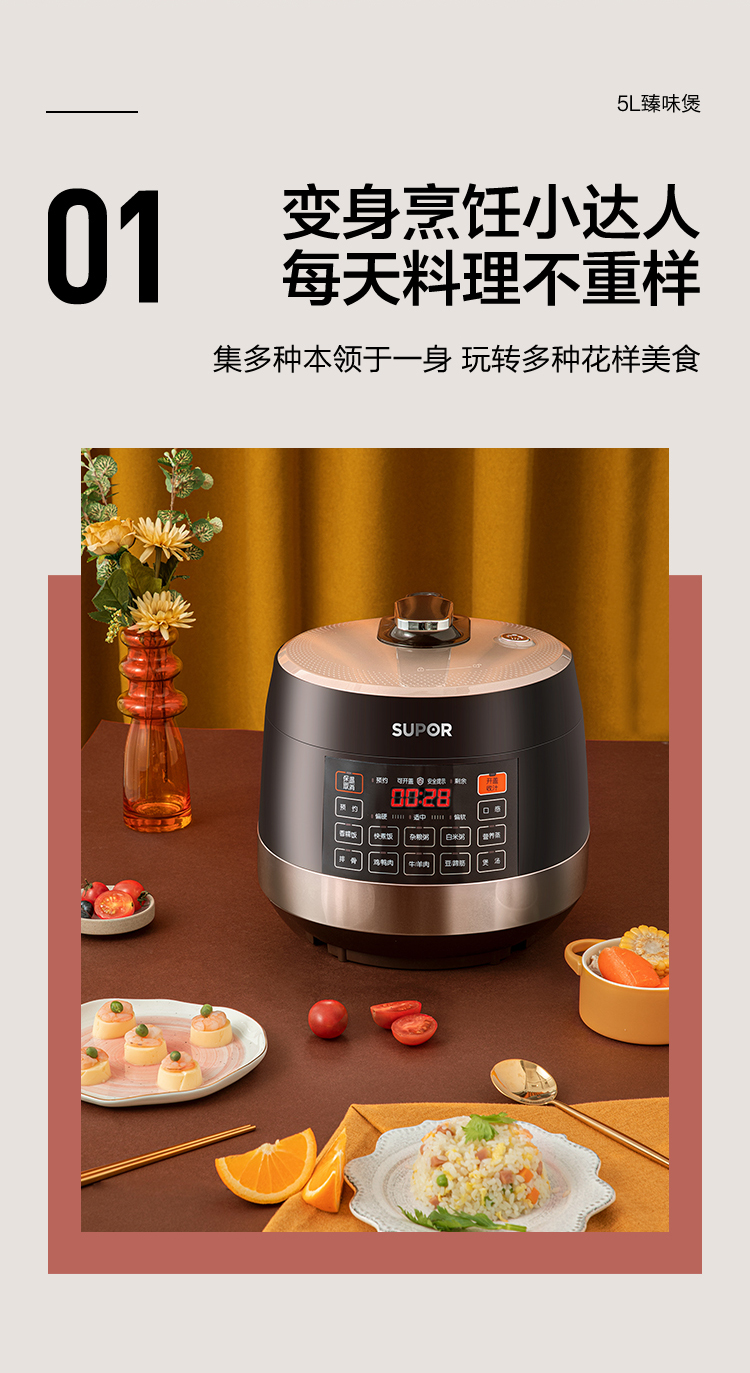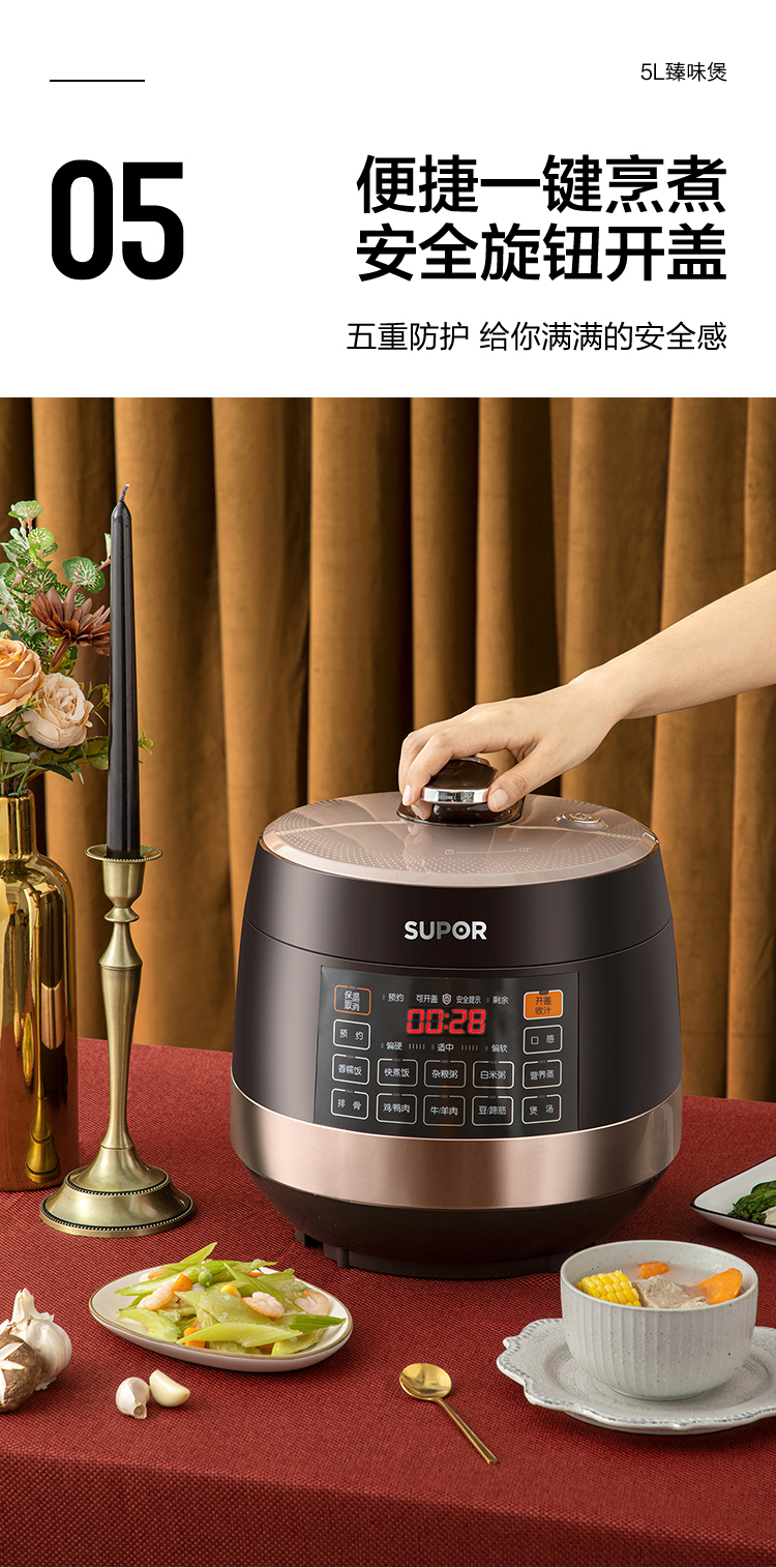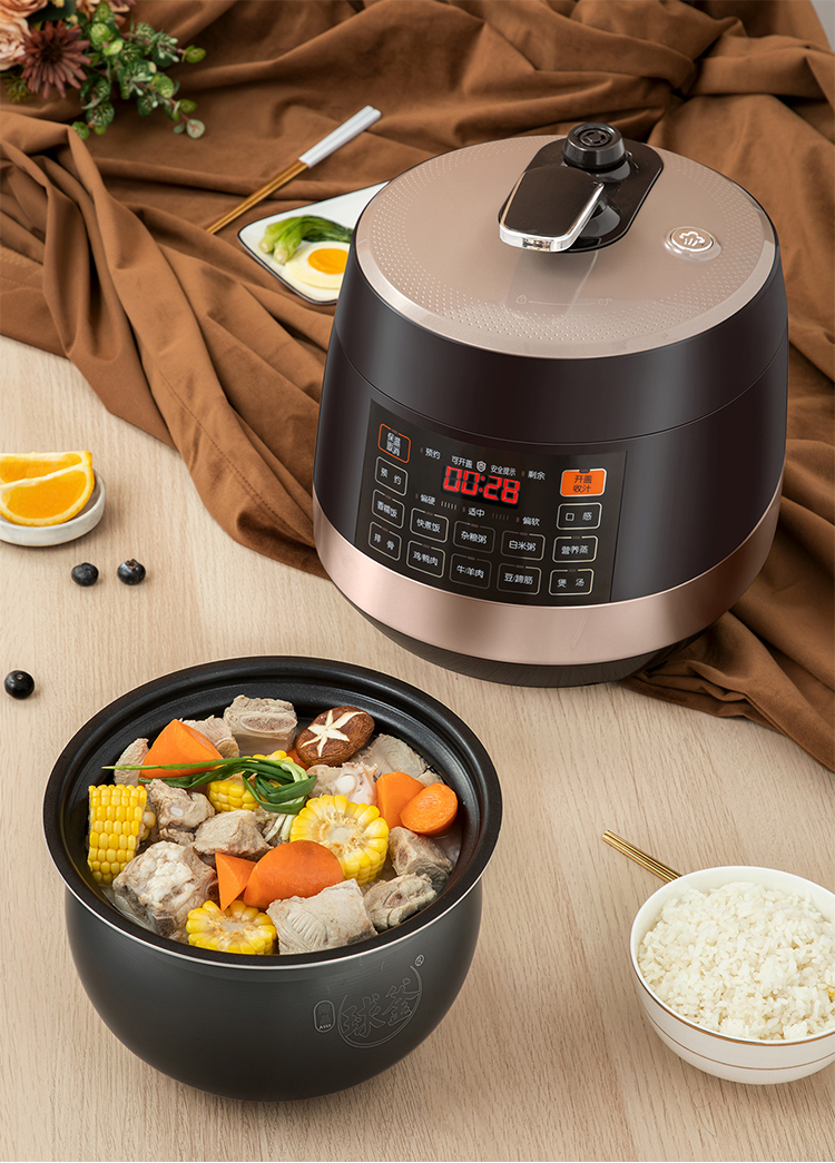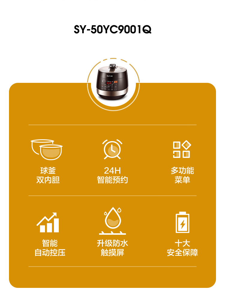 苏泊尔(SUPOR)电压力锅5L智能触控球釜双胆开盖收汁一键排压SY-50YC9001Q高压锅 5L双胆电压锅防水面板 个 咖啡金