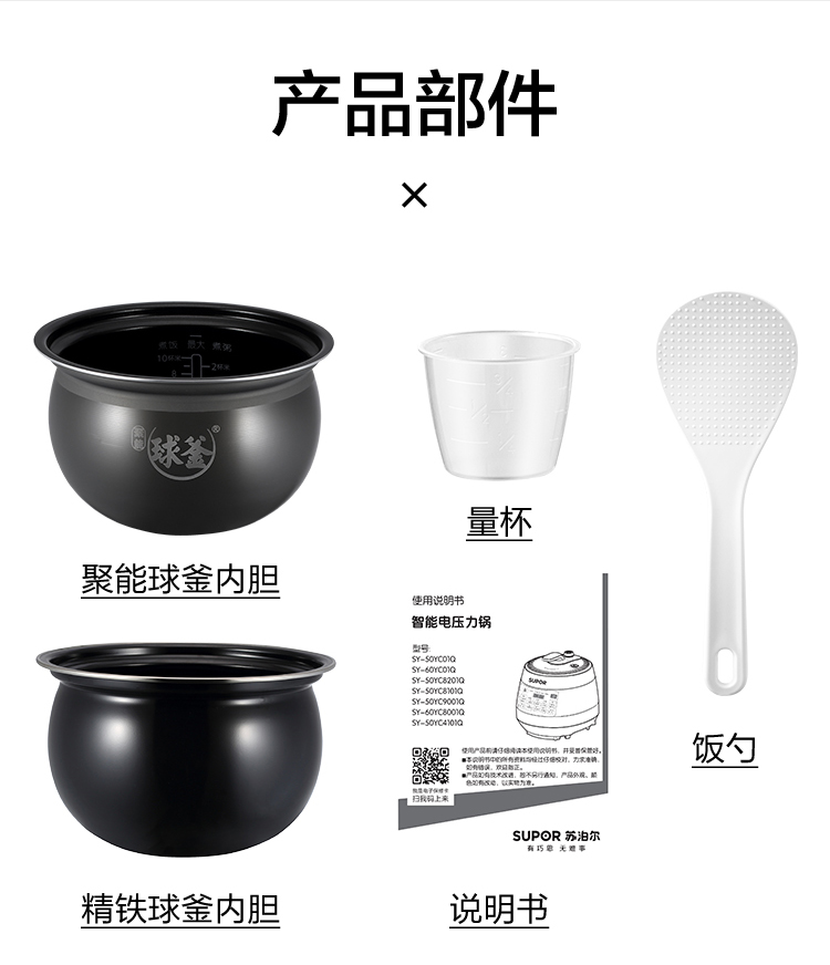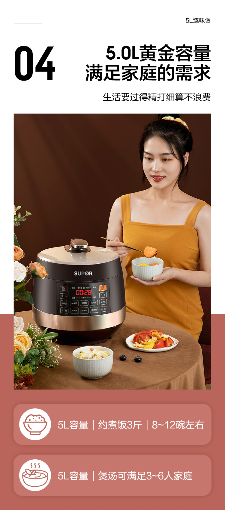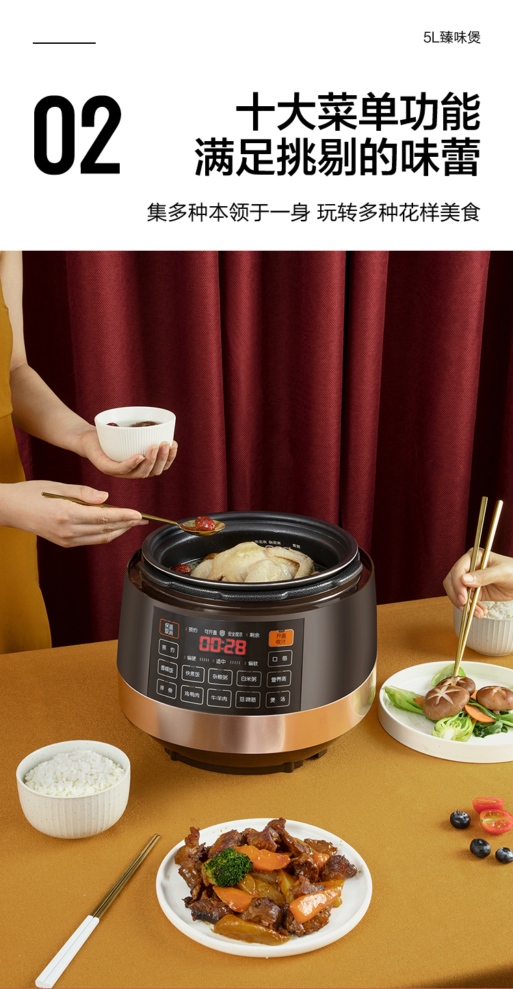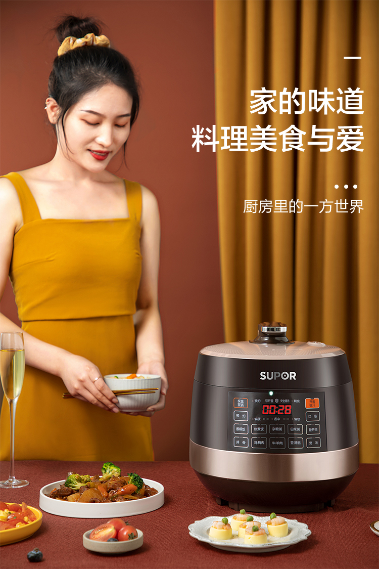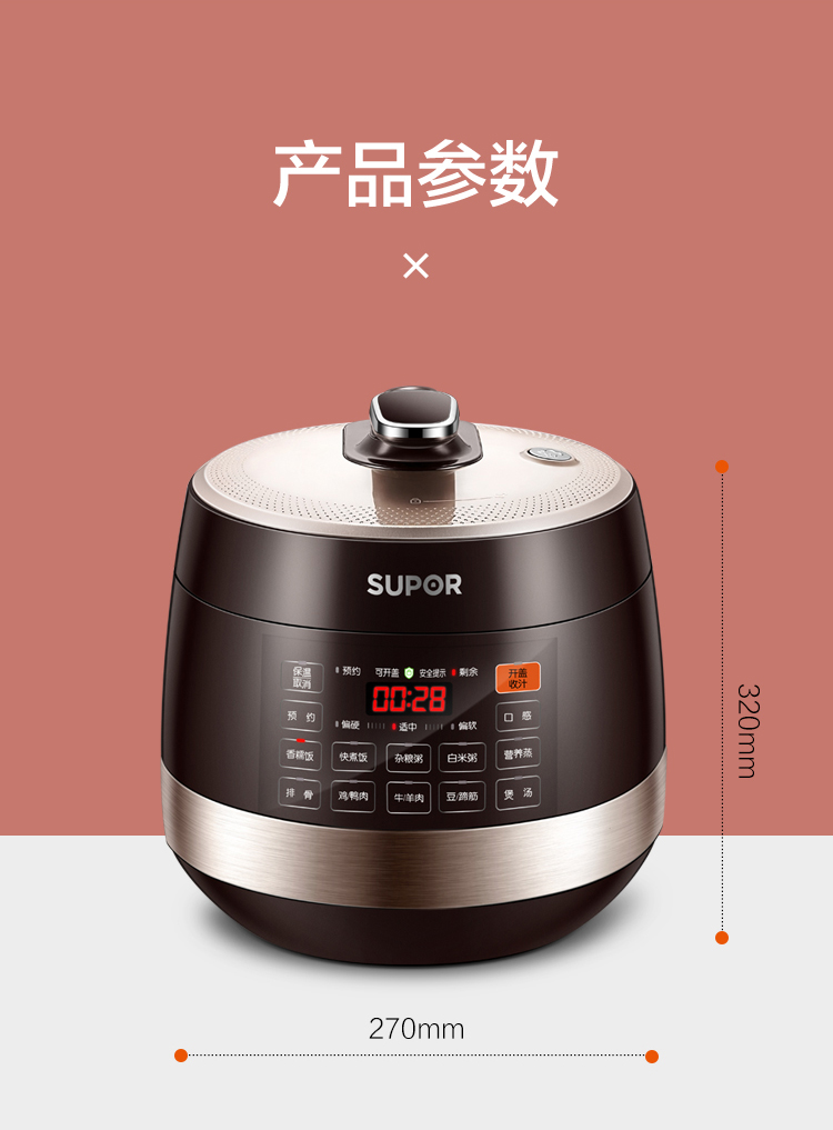 苏泊尔(SUPOR)电压力锅5L智能触控球釜双胆开盖收汁一键排压SY-50YC9001Q高压锅 5L双胆电压锅防水面板 个 咖啡金