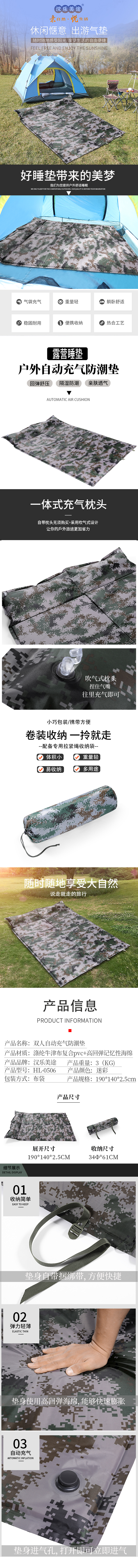 汉乐美途双人自动充气防潮垫HL-0506 随机