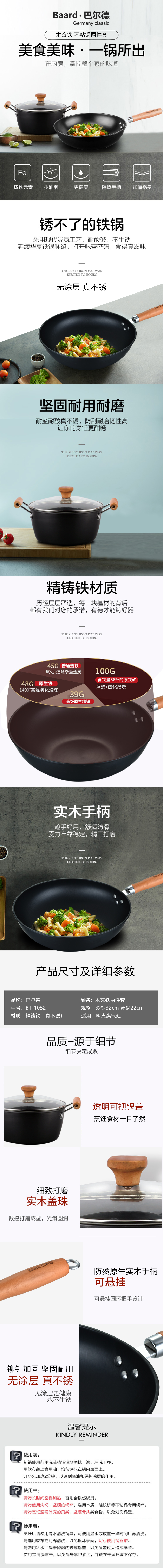 巴尔德炒锅汤锅二件套BT-1052(单位:套) 黑色