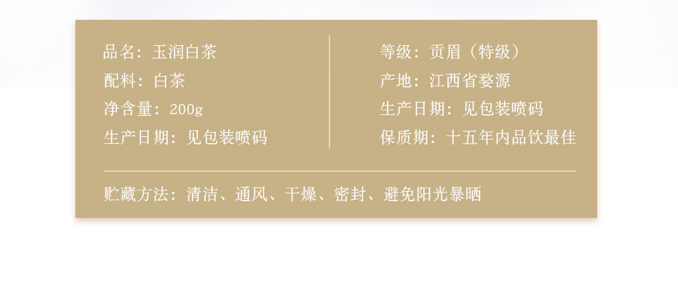 本无尘江右情玉润白茶200g 荒野婺源白茶