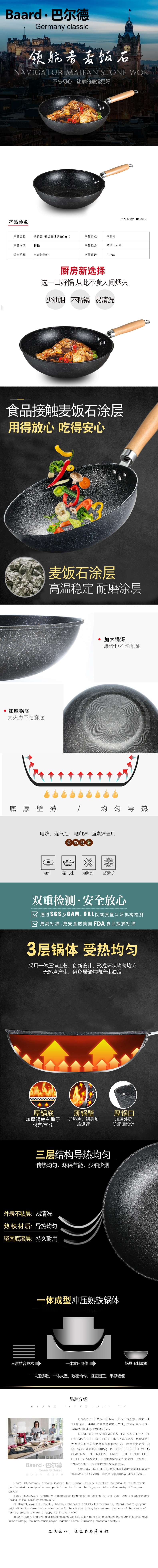 巴尔德 领航者麦饭石炒锅 ,BC-019(无盖)(单位:套) 黑色