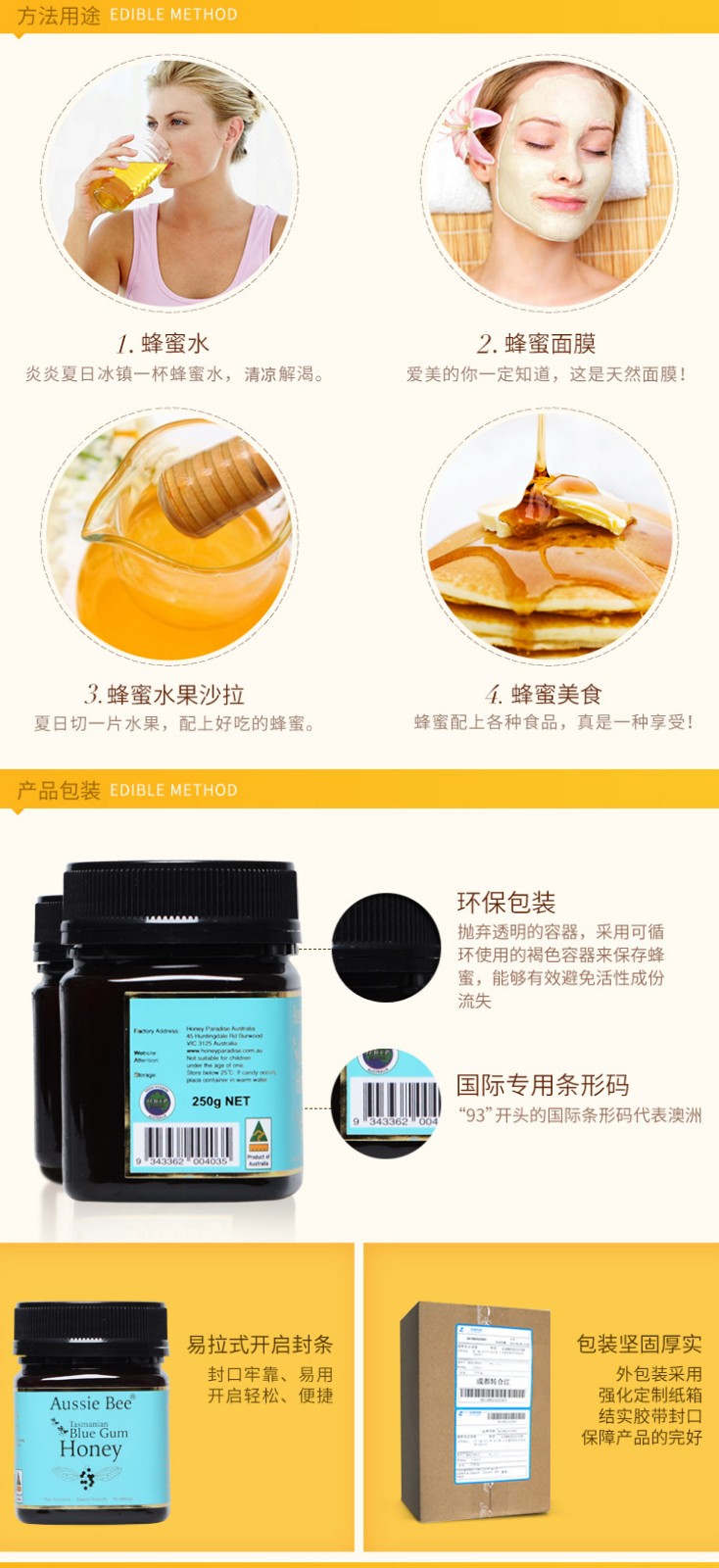 澳美蜜蓝桉蜂蜜礼盒250克*2 宝石蓝