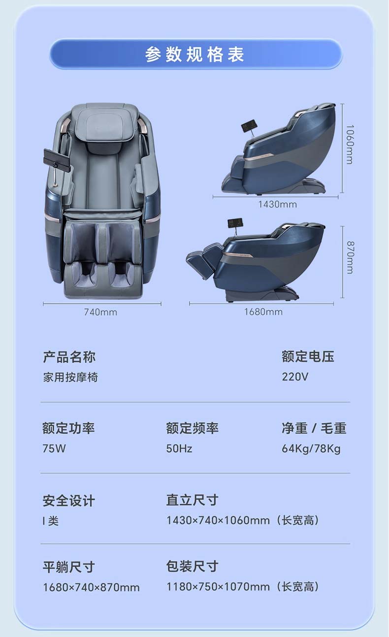 QTQ S350 2023年新品 家用智能全自动豪华按摩椅零重力太空舱 单位:台 深空灰