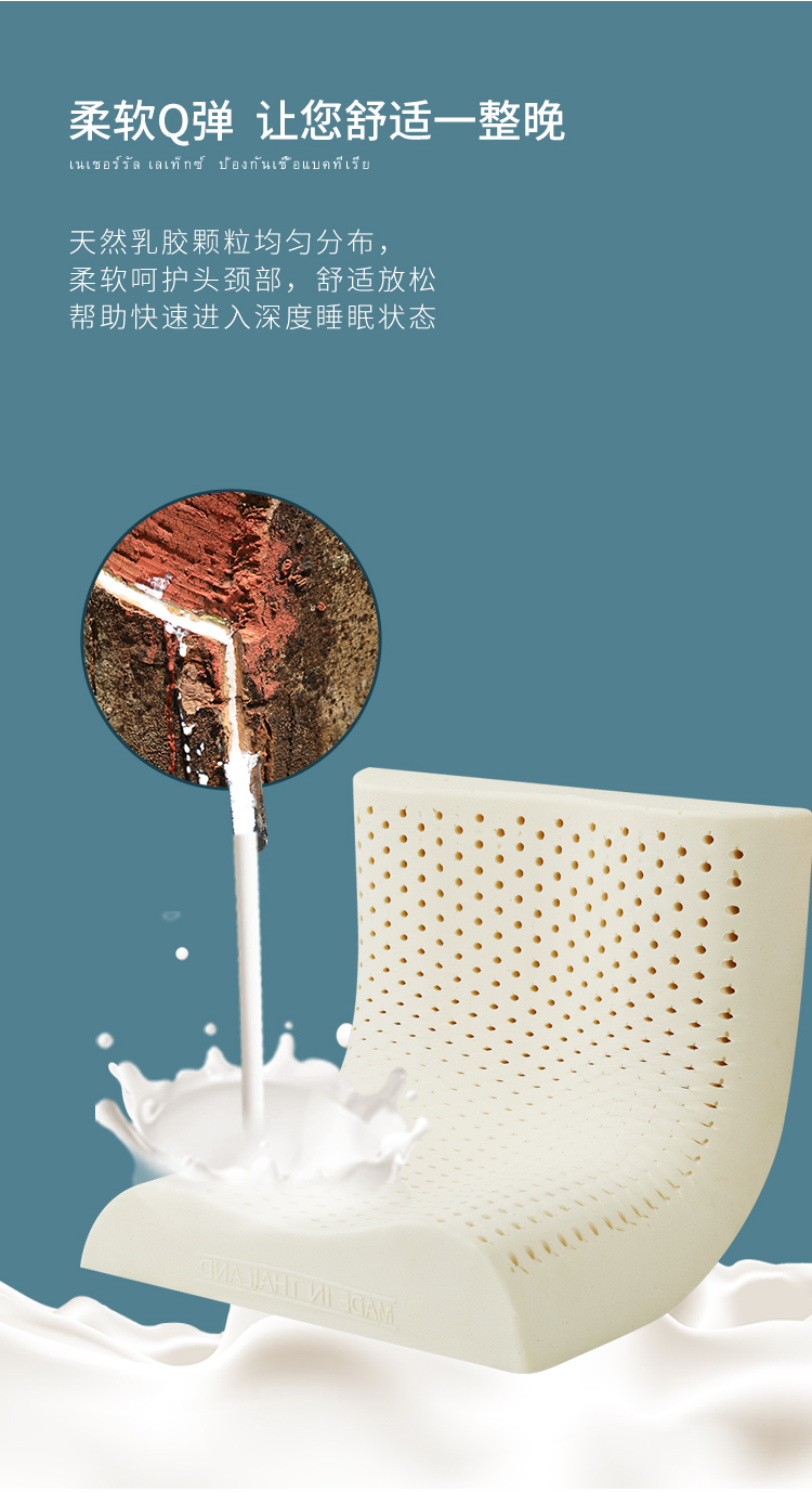 泰嗨 矮款波浪平滑乳胶枕头 枕心带枕套 泰国原装进口,93%乳胶 TPA33-01 本白色