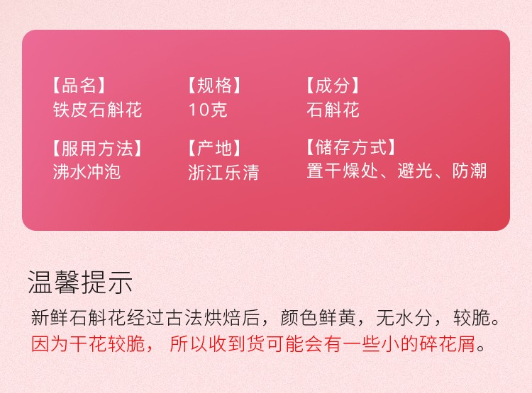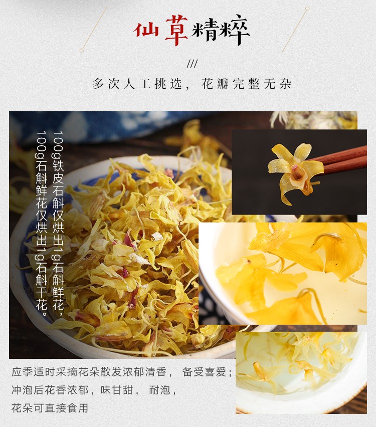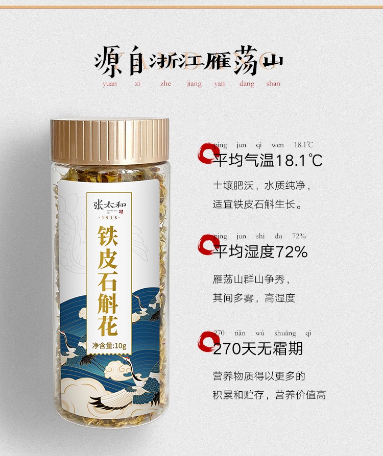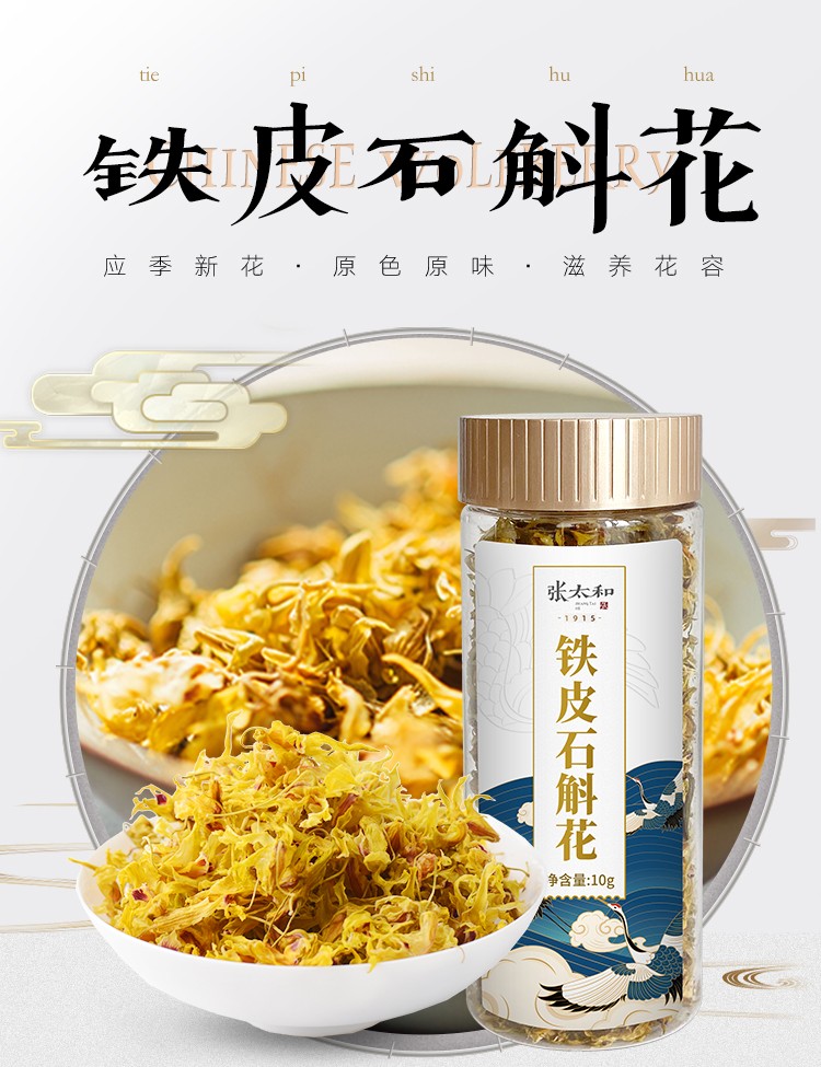 张太和始创于1915 铁皮石斛花10g/瓶干花石斛花铁皮枫斗茶花养生茶 白色