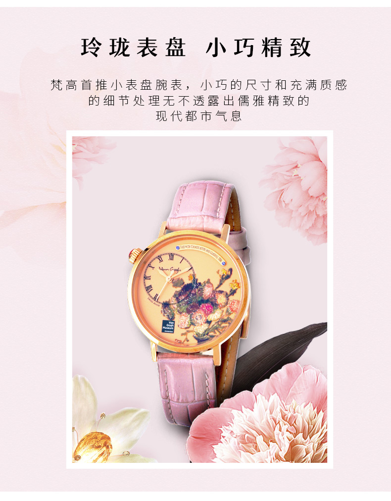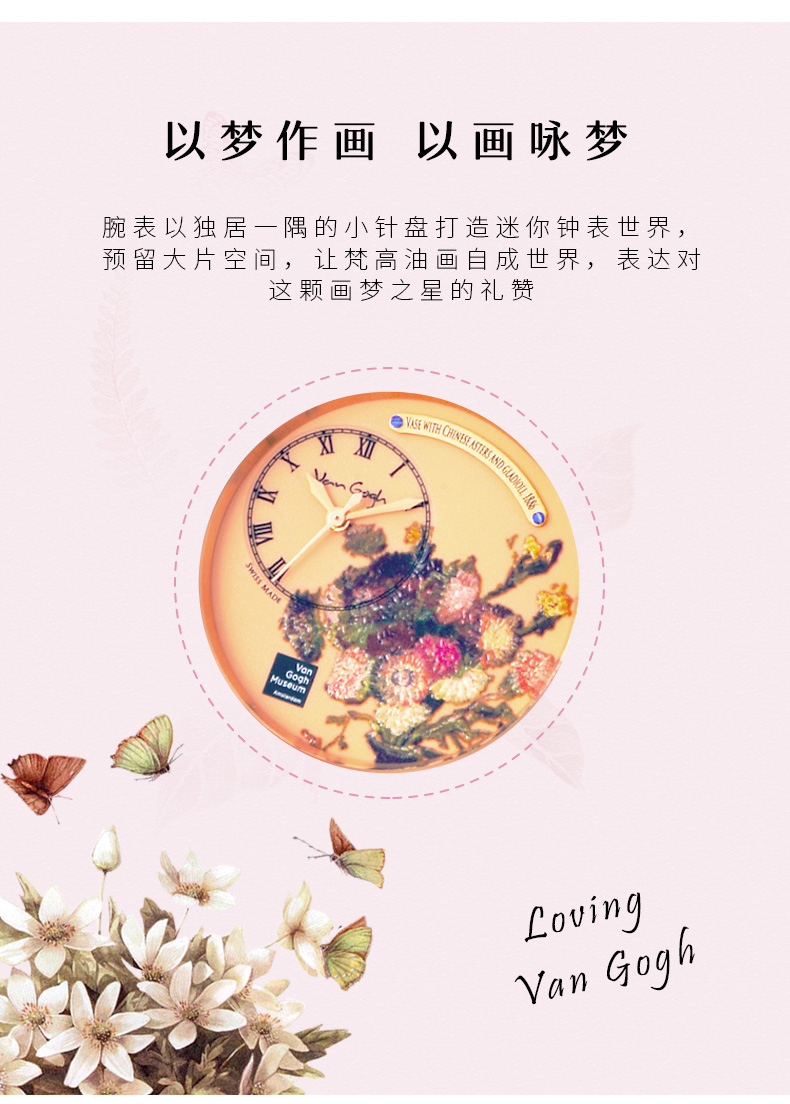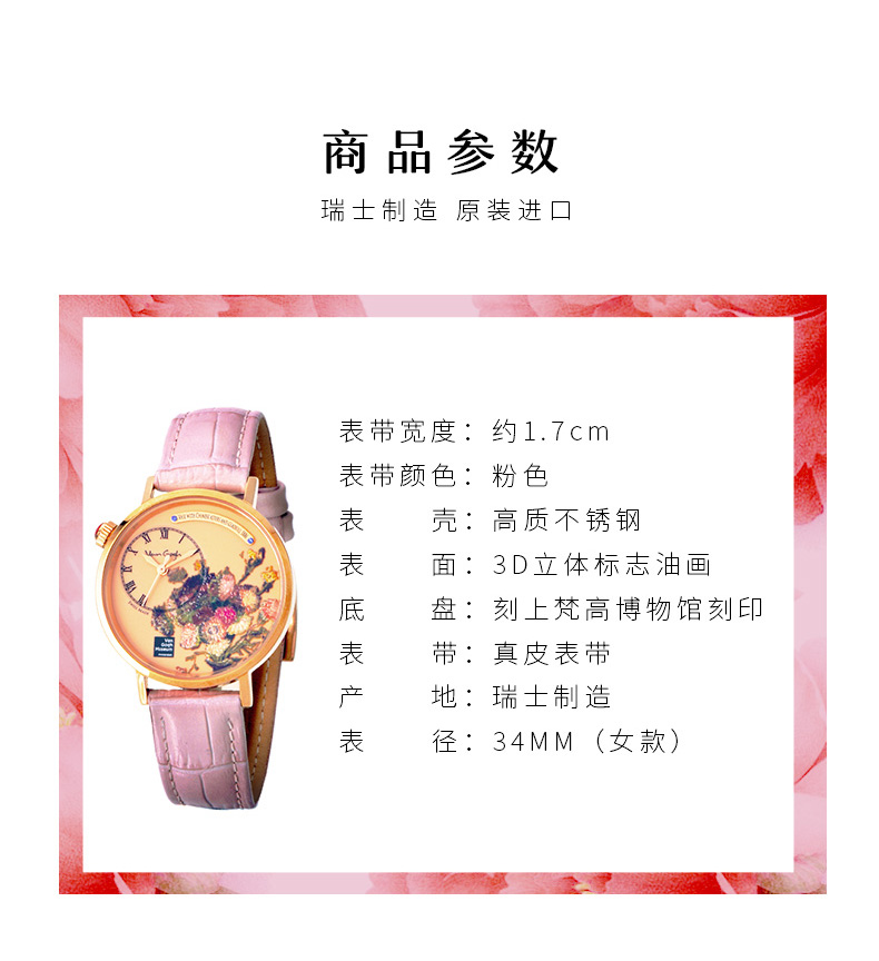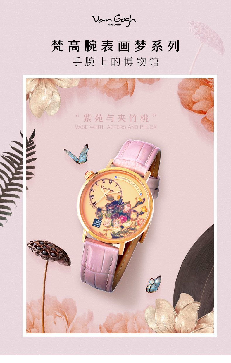 梵高VanGogh画梦系列创意油画潮牌博物馆正版授权原装进口瑞士女士手表 夹竹 粉色