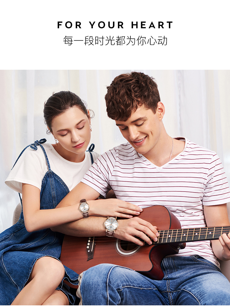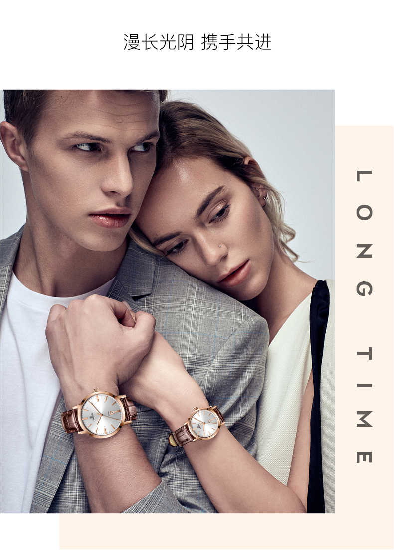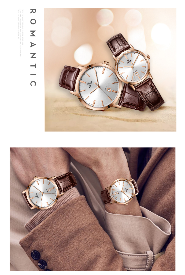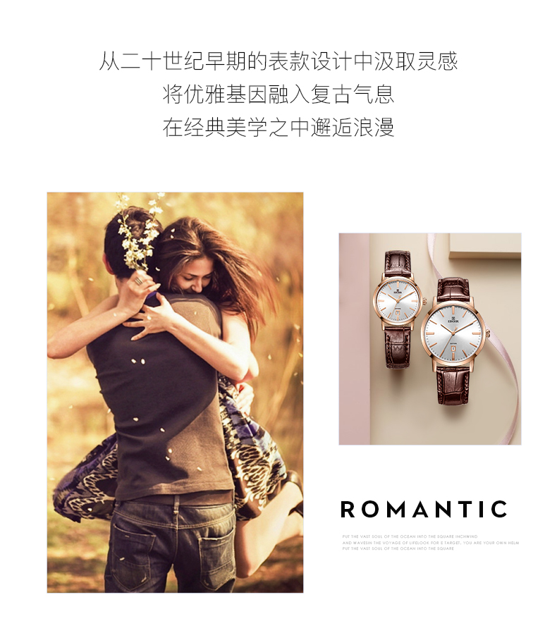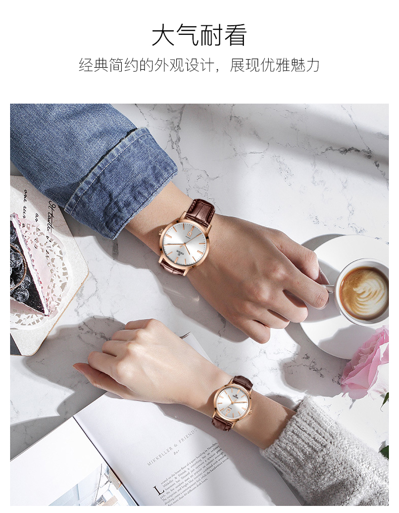 【专柜高品质】依波(EBOHR)专柜同款情侣石英手表男女棕色皮带日历腕表 皮表带女表 10890349 玫壳白面棕色皮带
