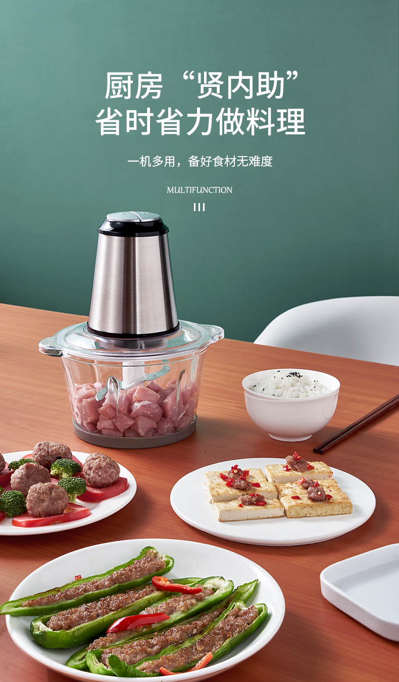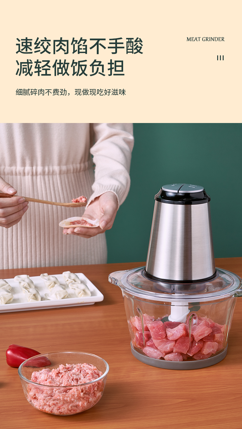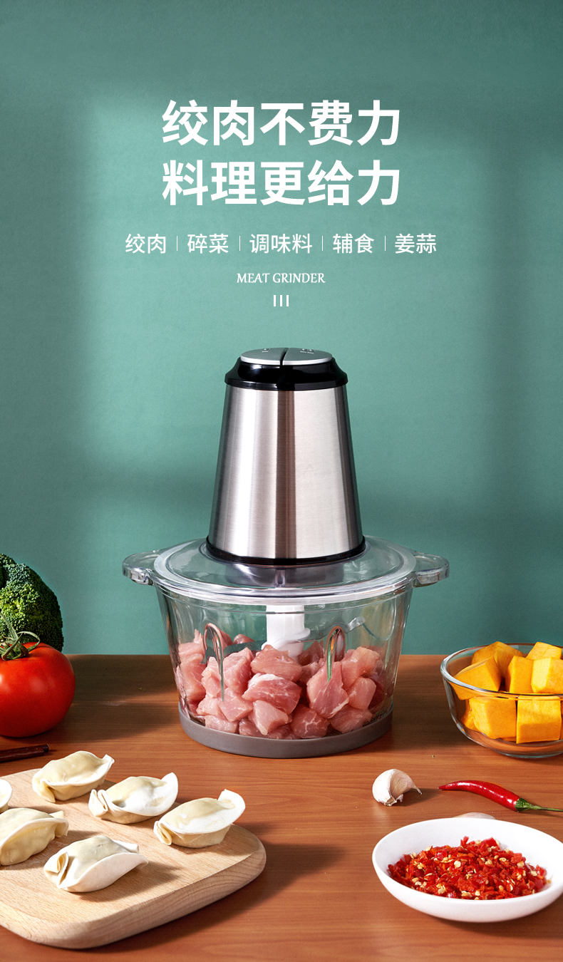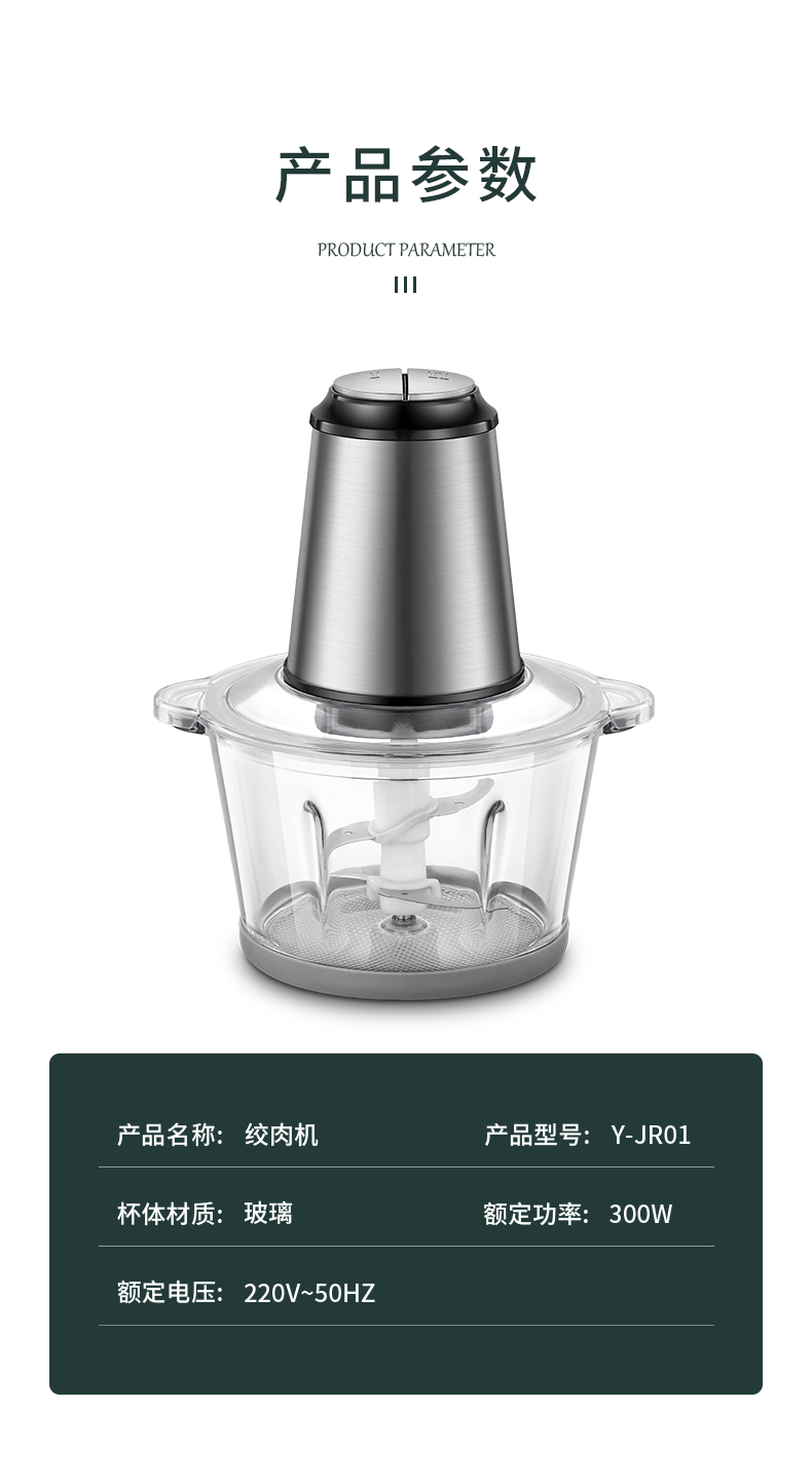 优益(Yoice)Y-JR01绞肉机1800ml容量2-6人家庭 金属银色