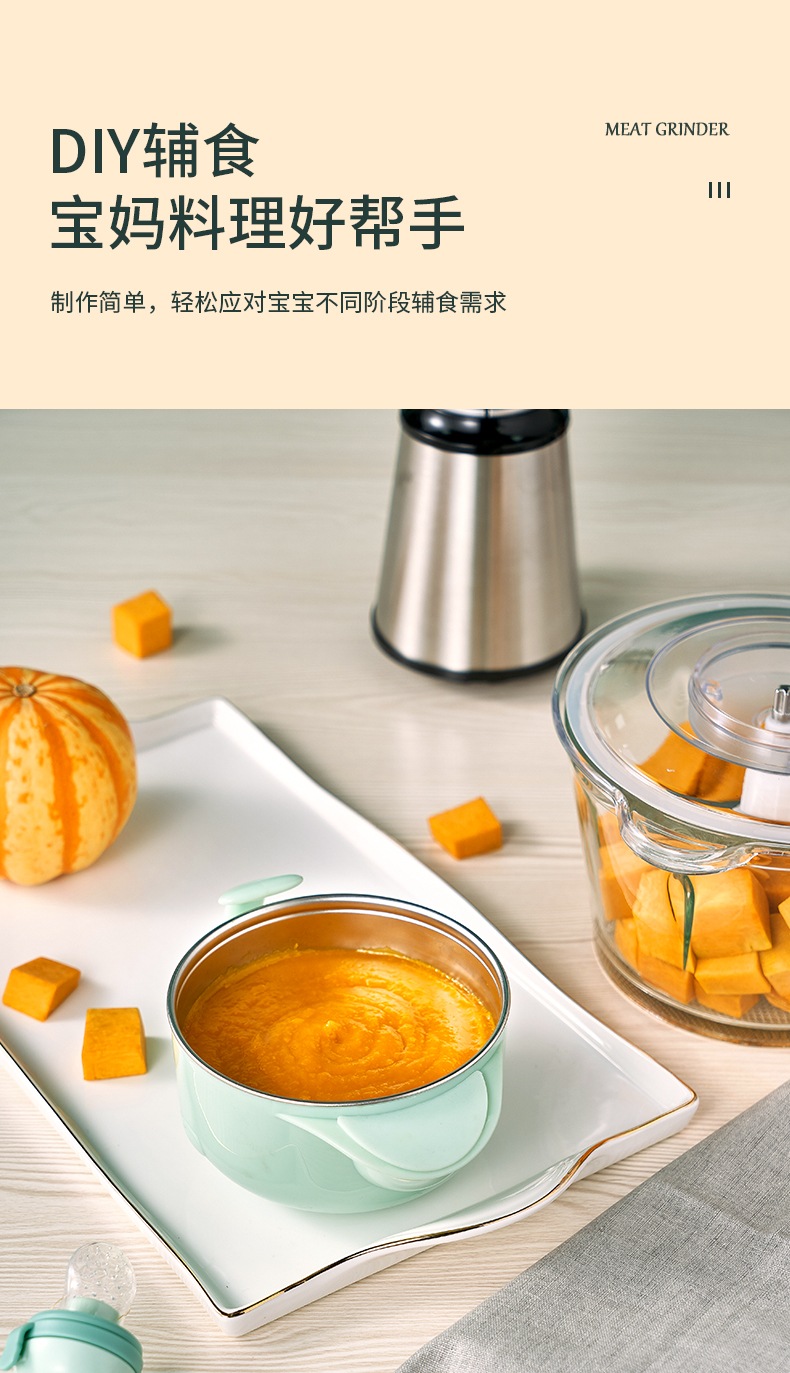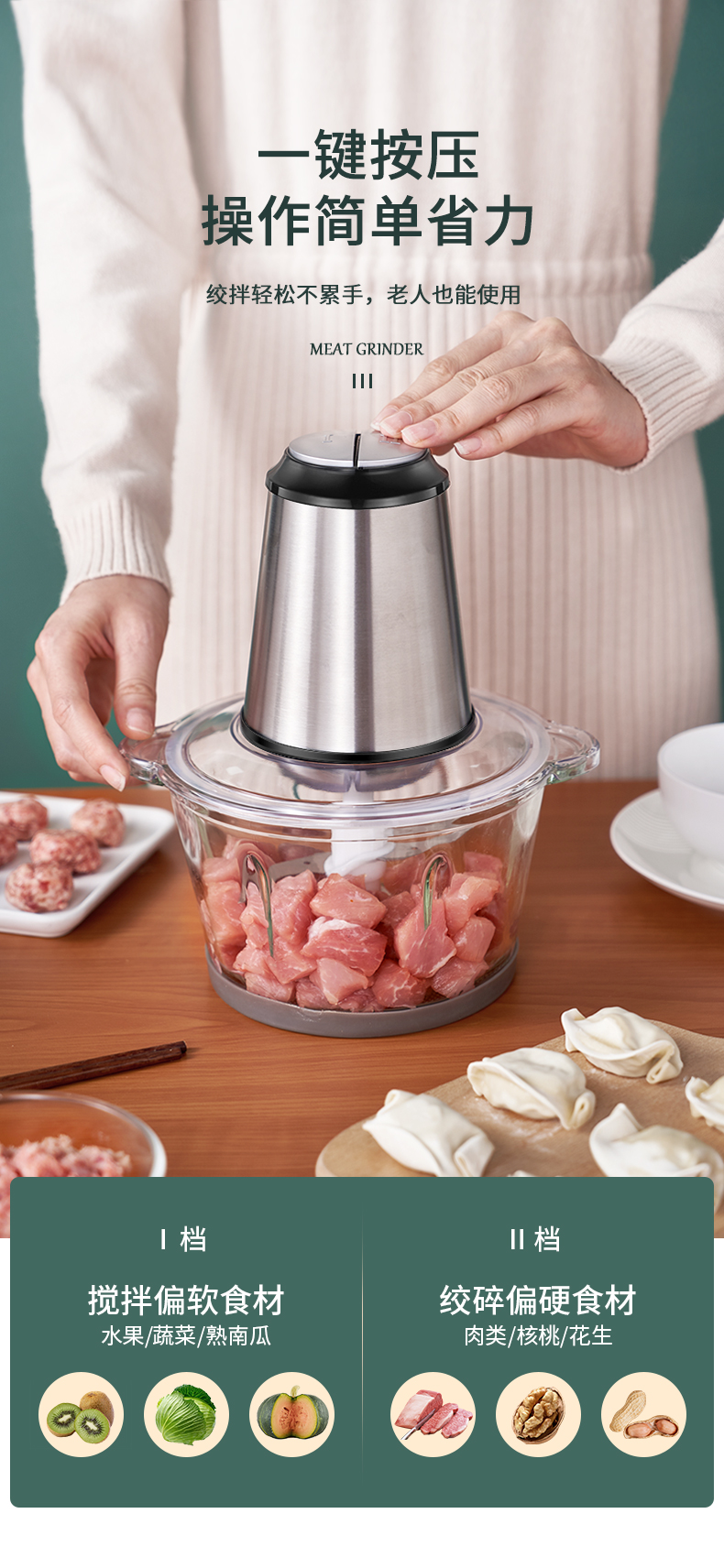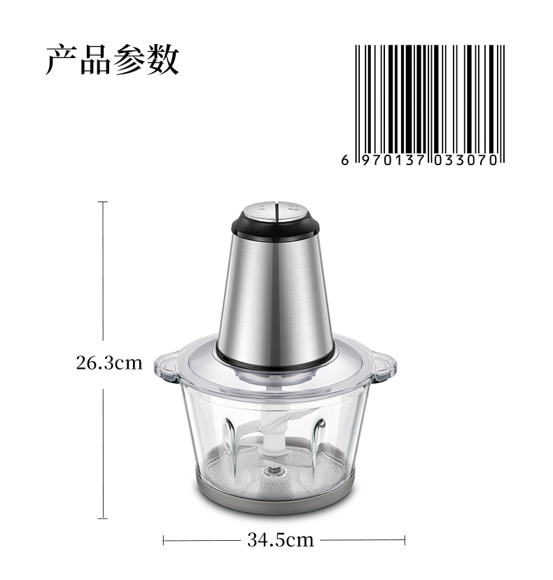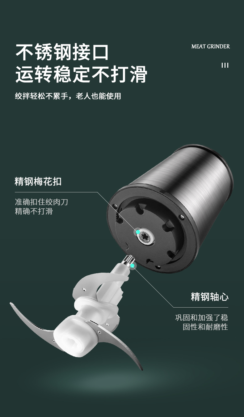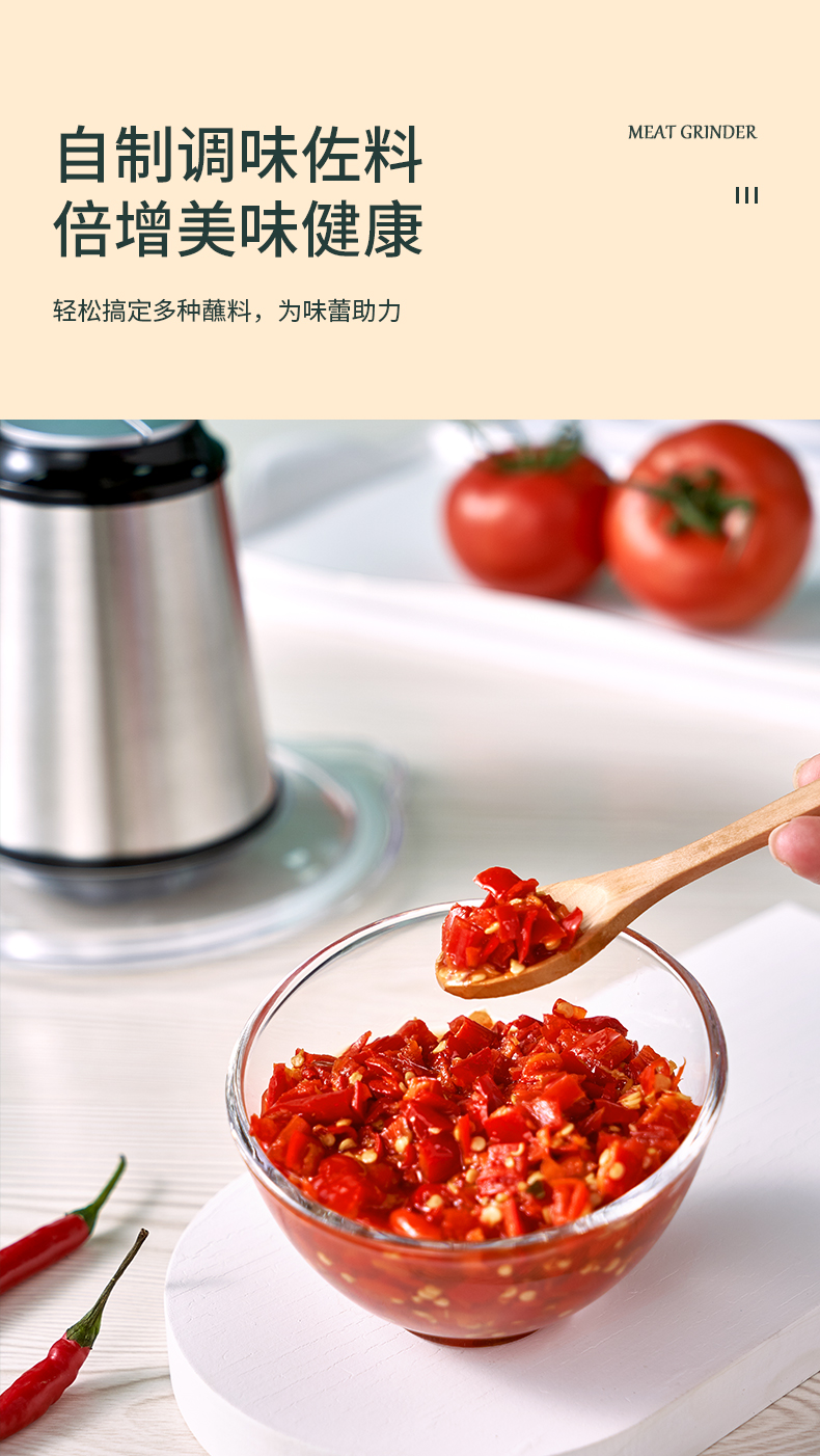 优益(Yoice)Y-JR01绞肉机1800ml容量2-6人家庭 金属银色