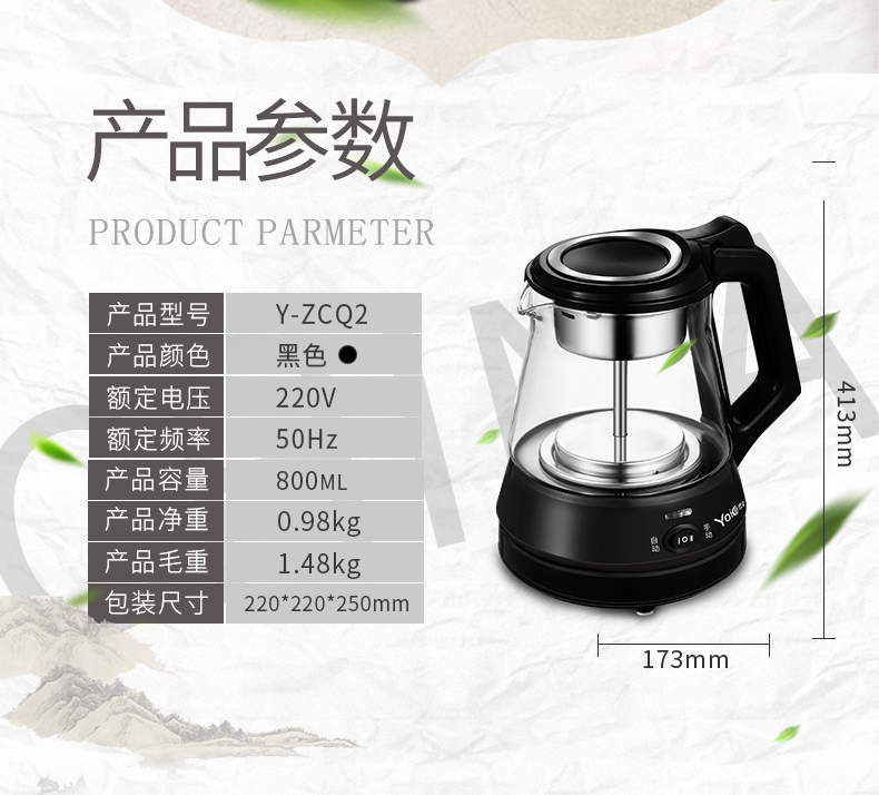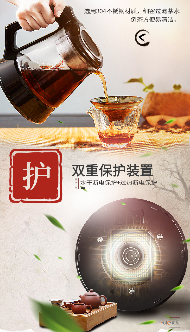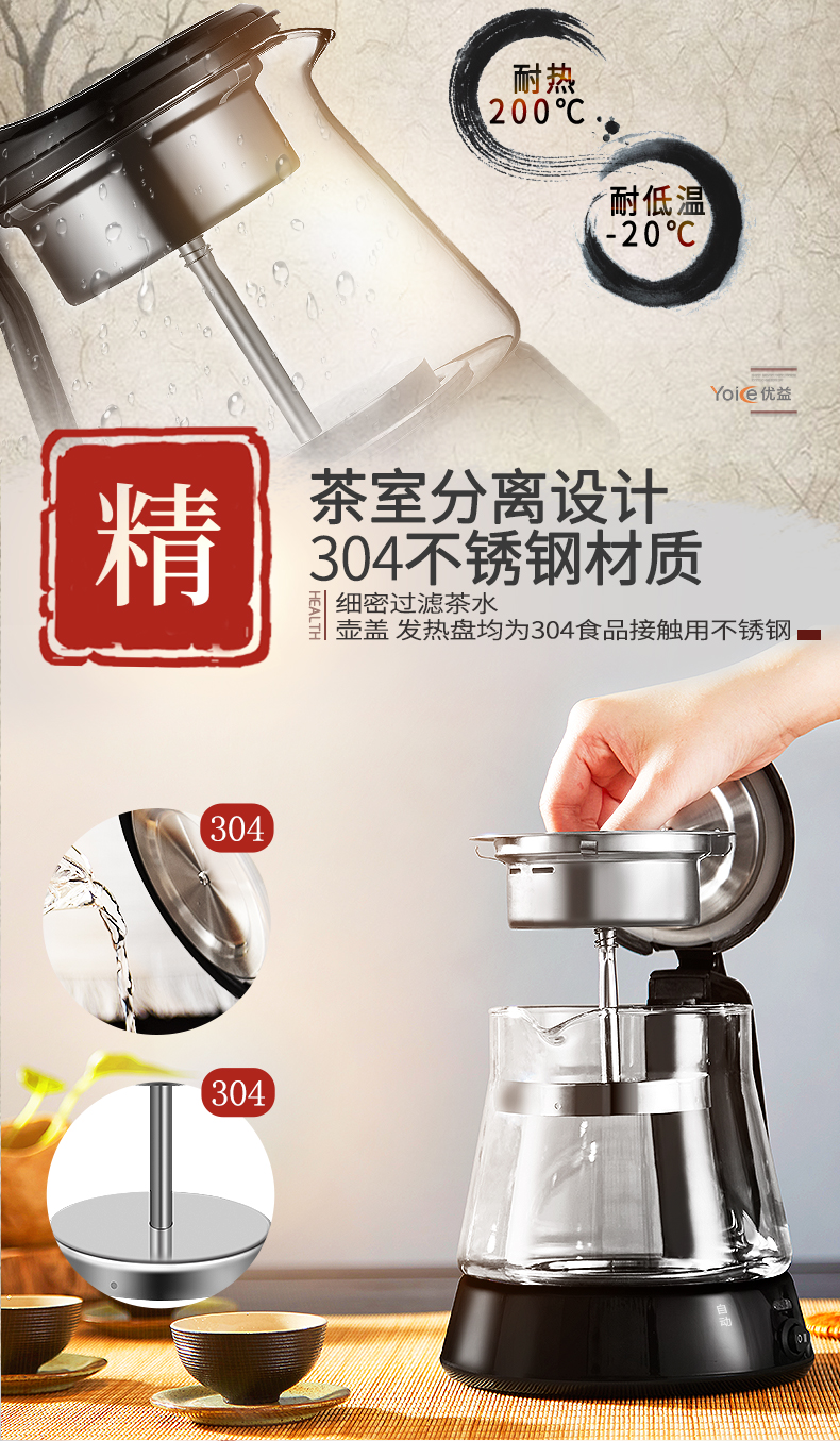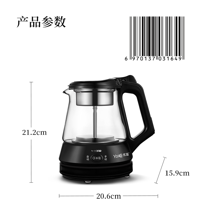 优益(yoice)煮茶器Y-ZCQ2 电水壶容量800ml(单位:台) 黑色