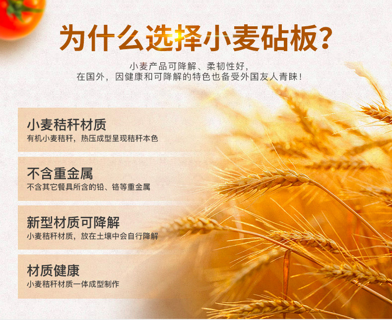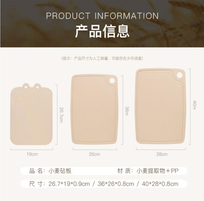 双枪(Suncha)菜板 可降解环保小麦砧板 切菜板 宝宝辅食板 案板小号 卡其色