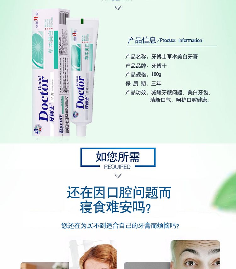 牙博士草本美白牙膏180g*3 牙博士草本美白牙膏180g*3