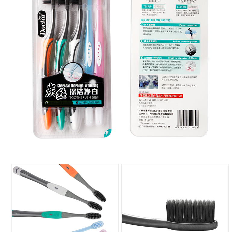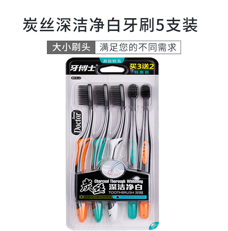 牙博士炭丝深洁净白牙刷DT3+2