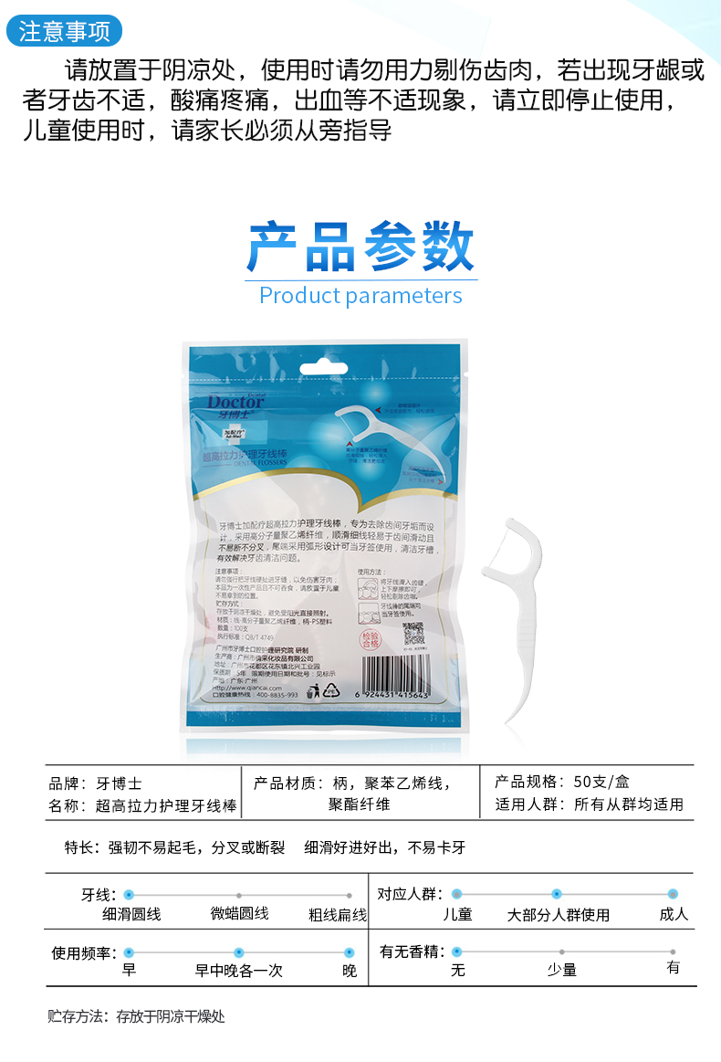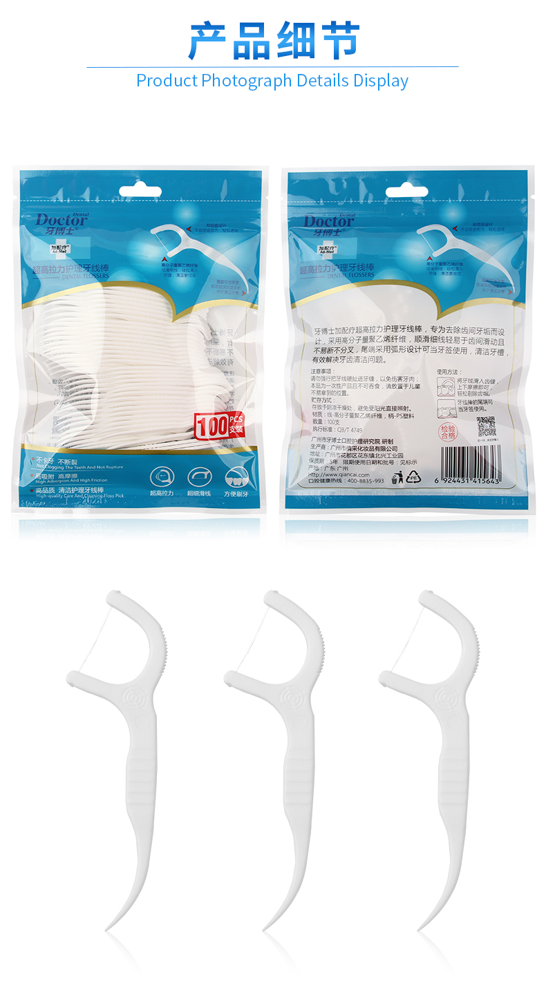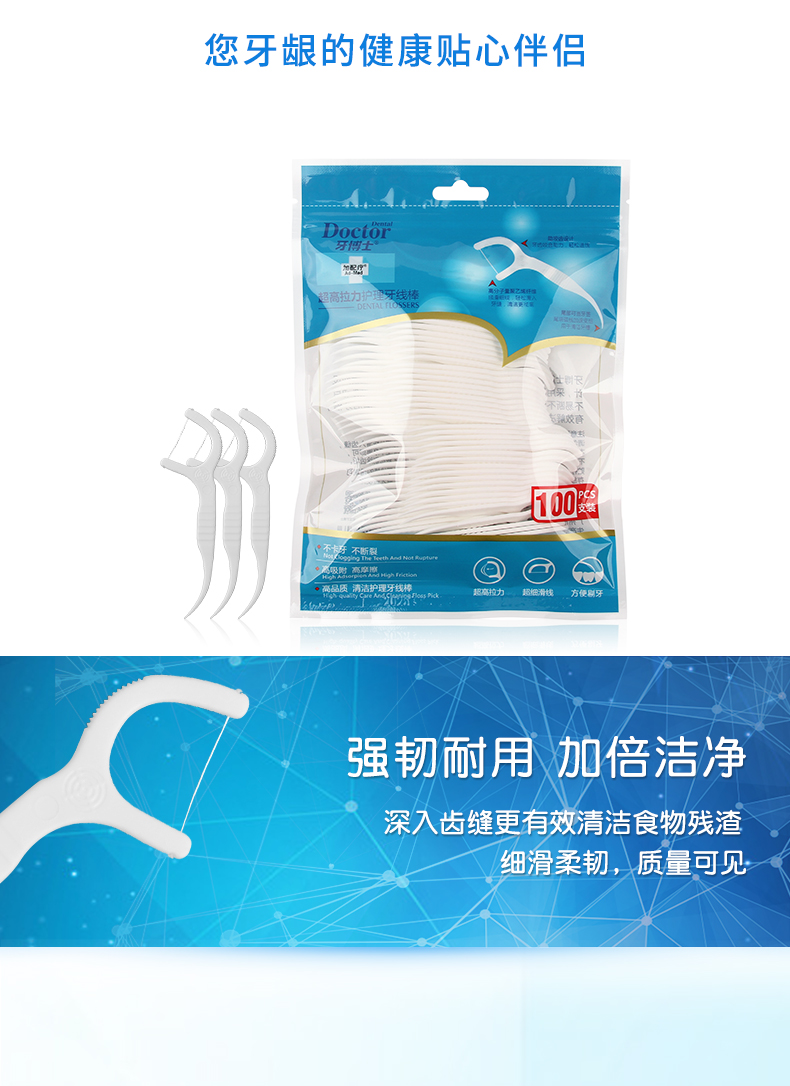 牙博士加配疗超高拉力护理牙线棒100支/袋 牙博士加配疗超高拉力护理牙线棒100支/