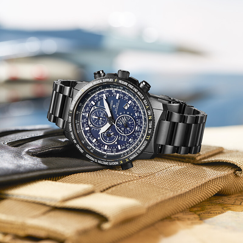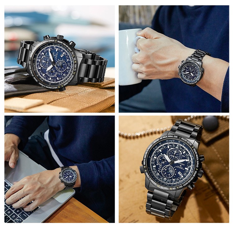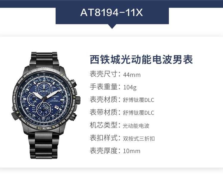 Citizen西铁城 光动能多局电波手表表商务运动防水蓝盘钢带男表AT8195-85L 蓝色 蓝色