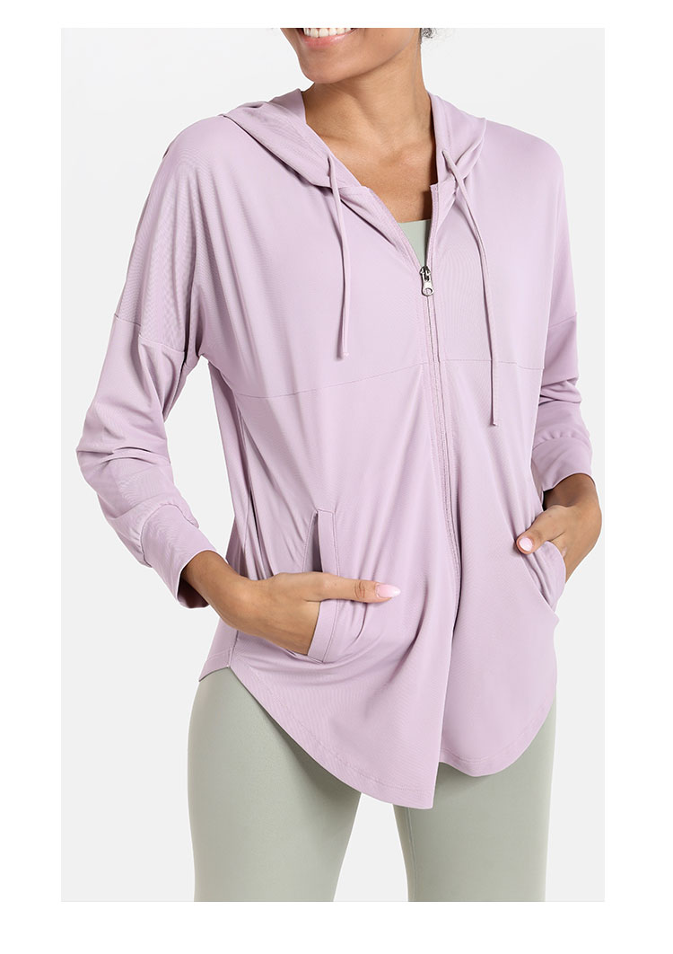 唯卡洛vincrox 运运外套 瑜伽跑步 薄夏季宽松透气防晒罩衫长袖健身运动外套 21405 柔美紫 S