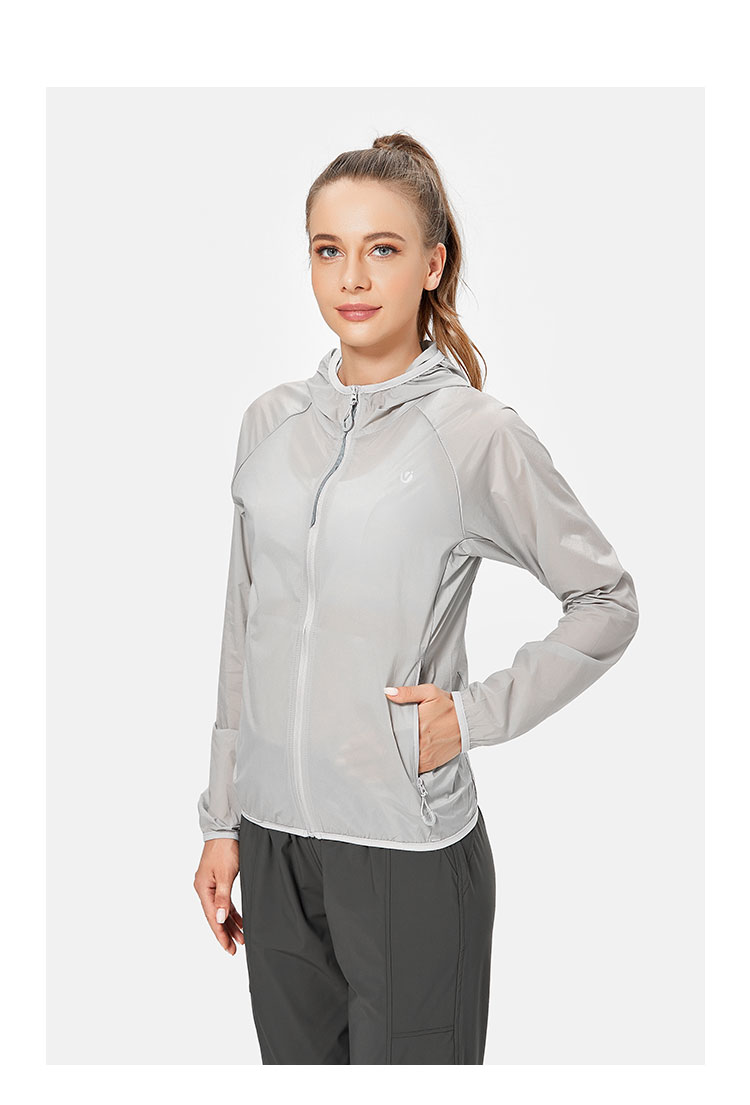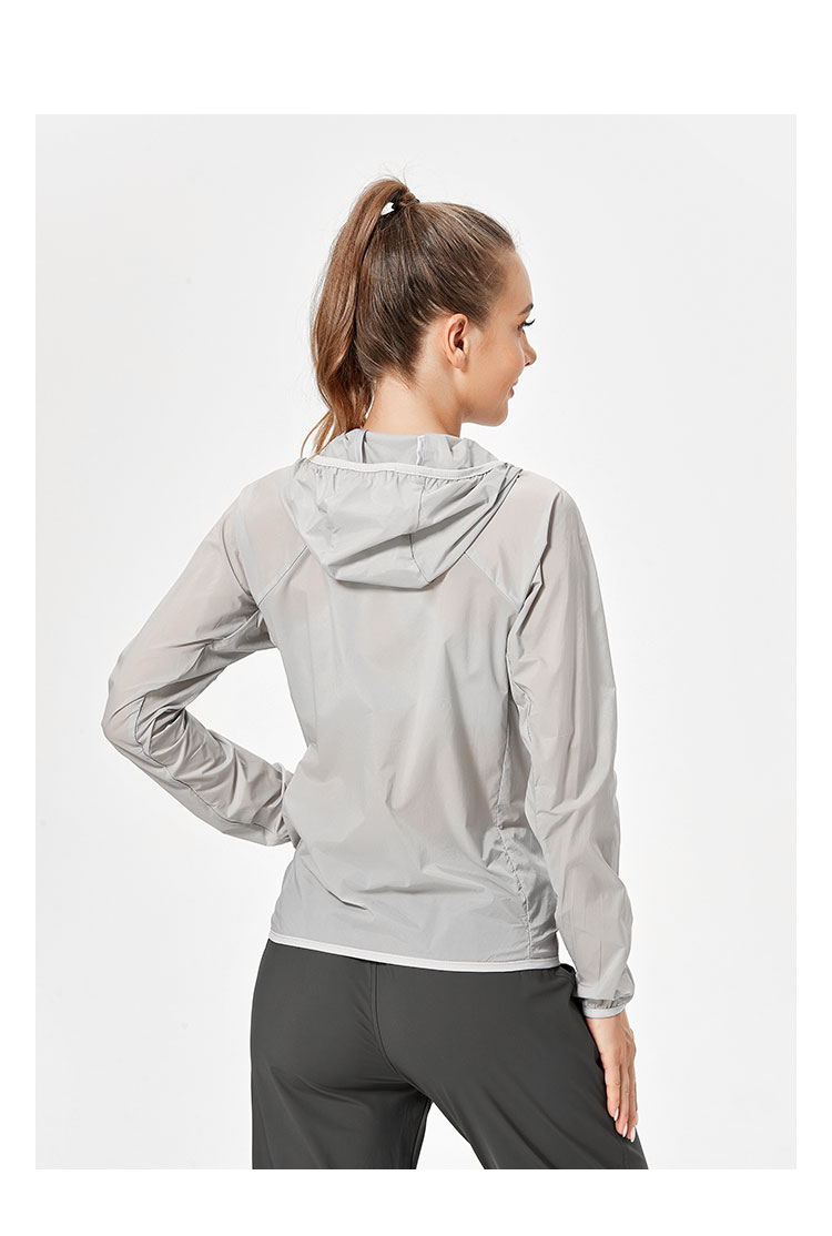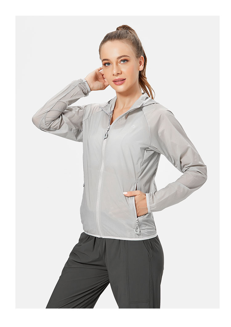 唯卡洛vincrox运动外套 瑜伽健身跑步 薄款防晒透气速干吸汗热身服长袖运动外套 21503 珍珠灰 XL