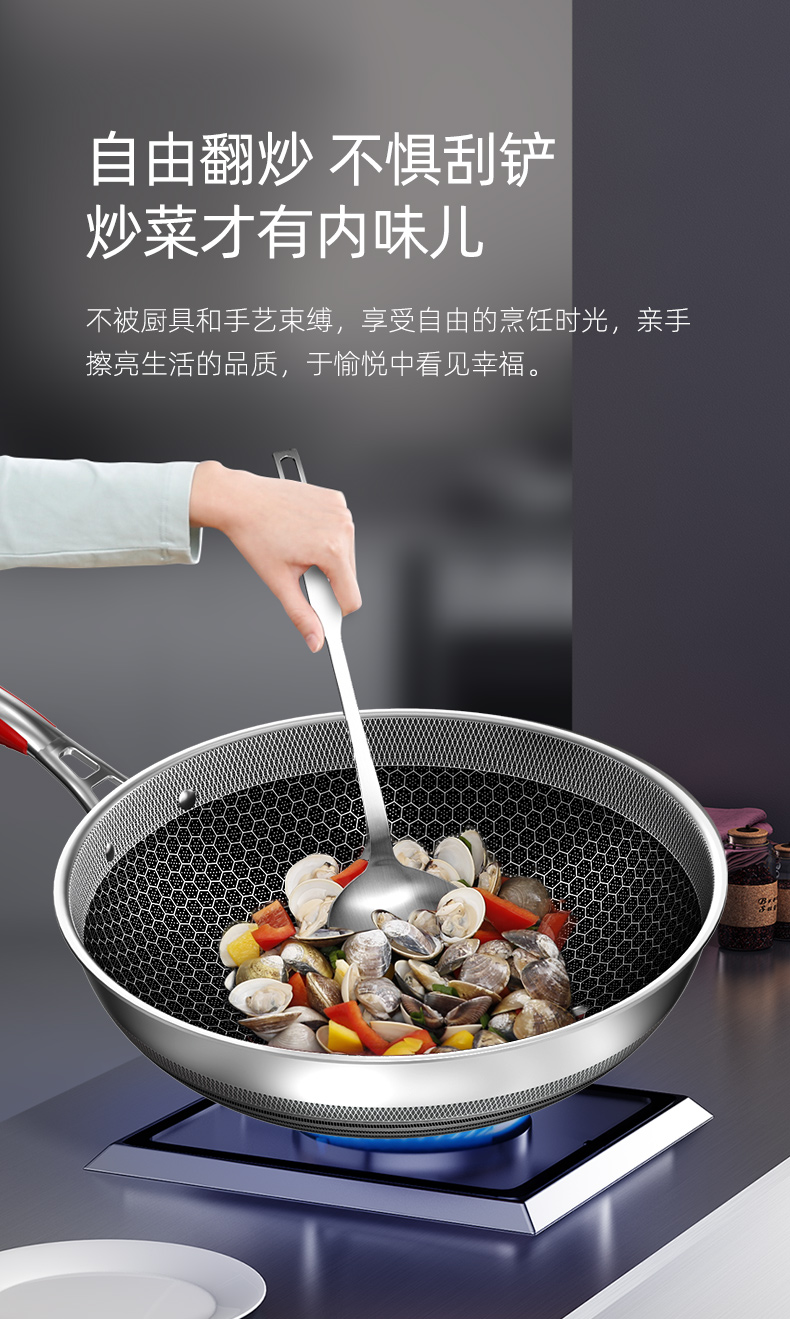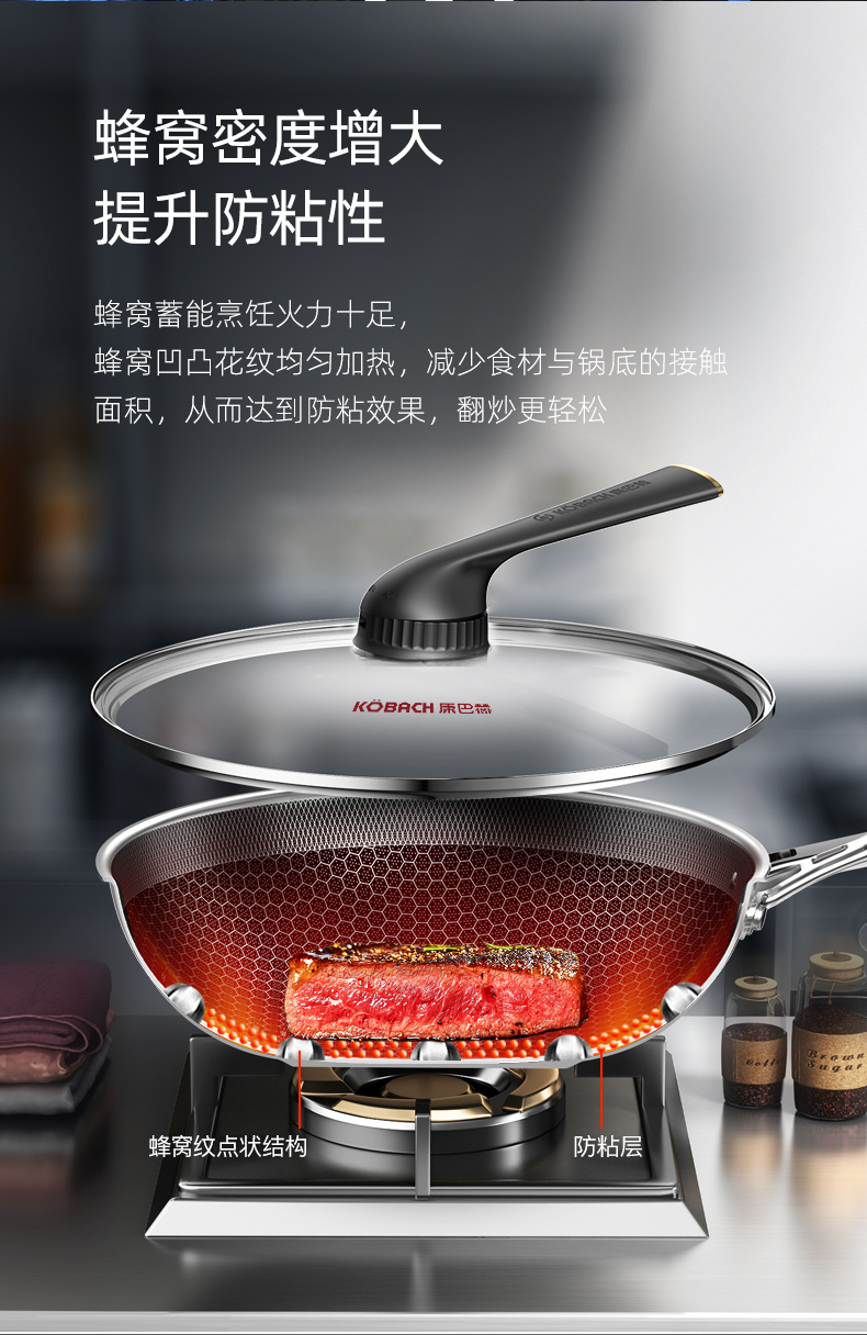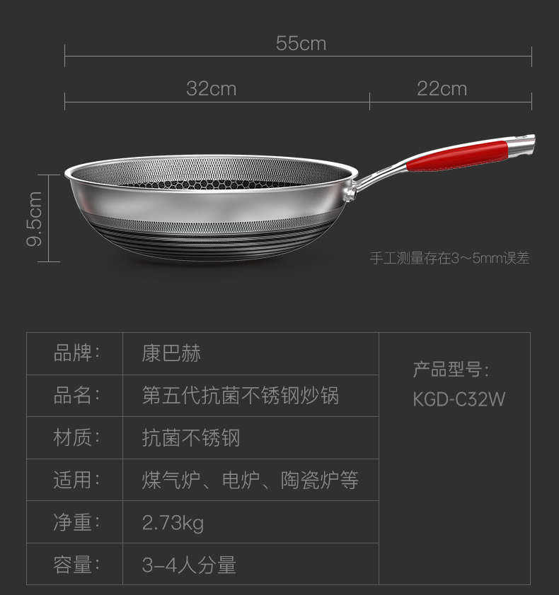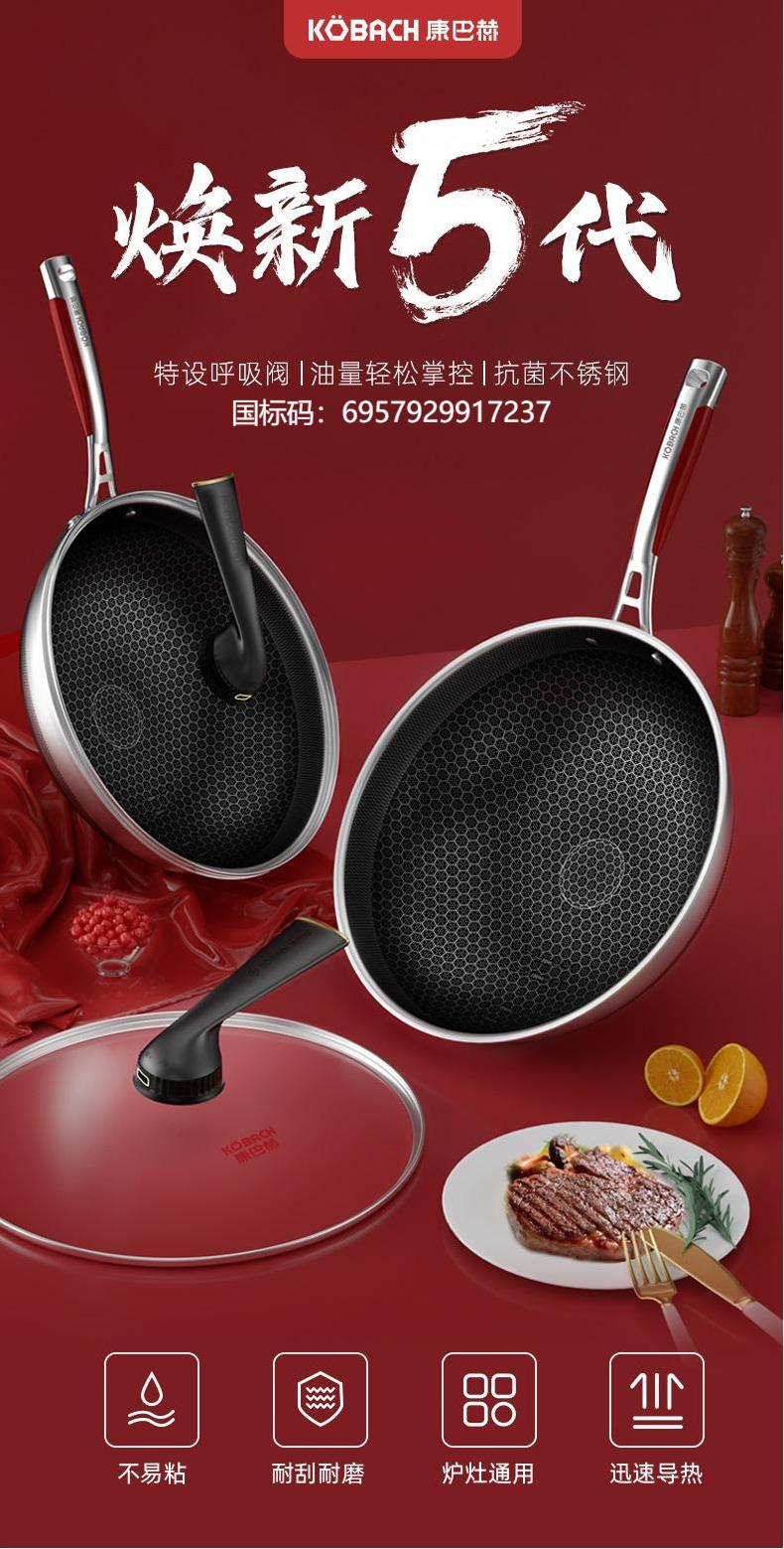 康巴赫(KBH)五代不锈钢炒锅 32cm KGD-C32W【14030151】(单位:套) 不锈钢色