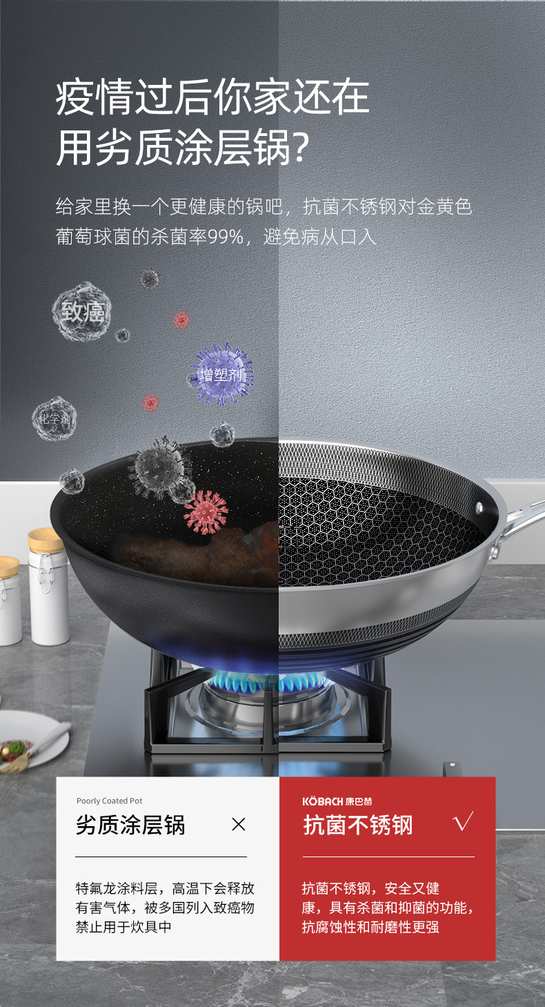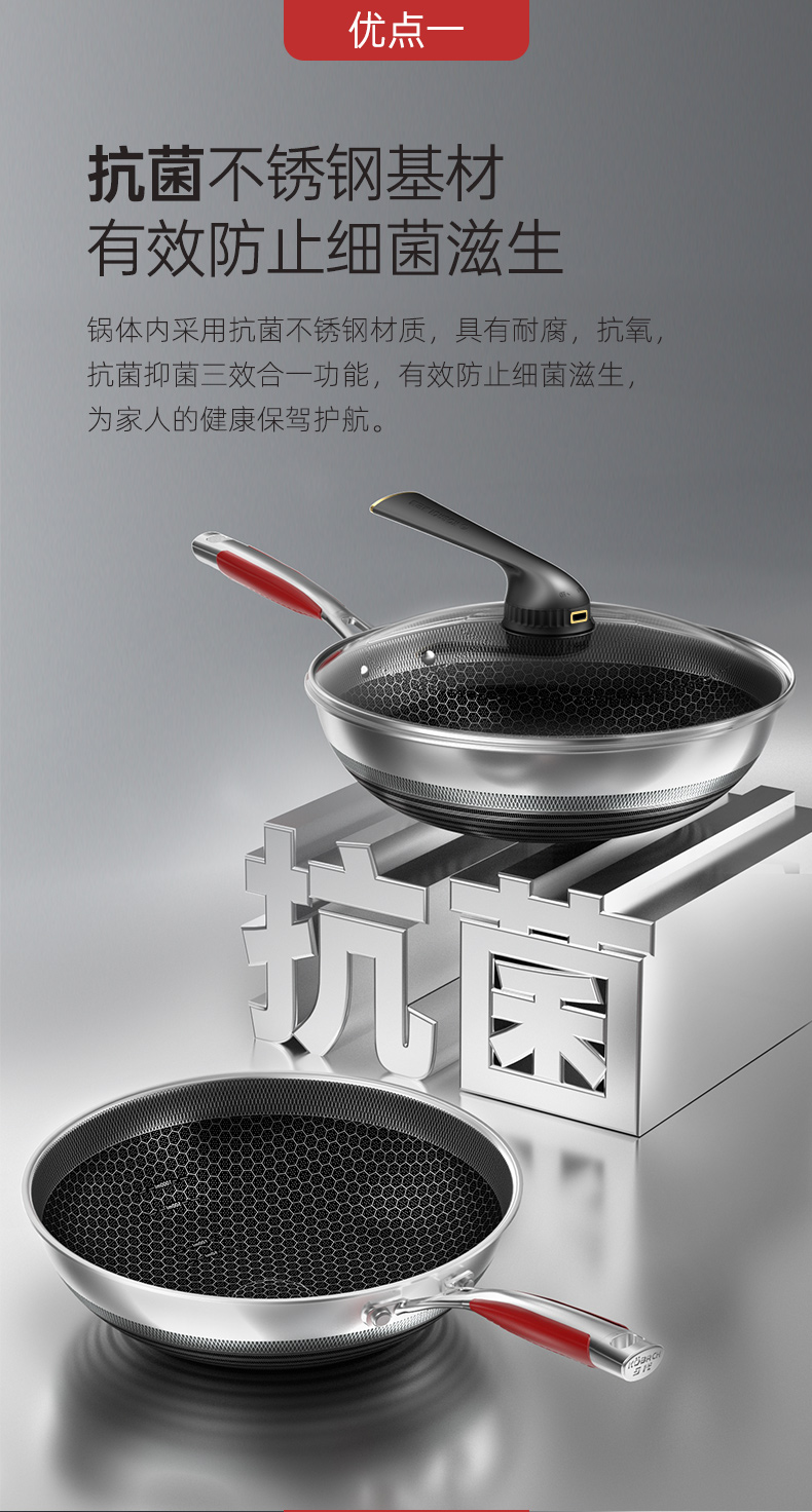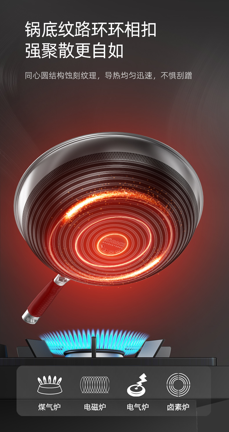 康巴赫(KBH)五代不锈钢炒锅 32cm KGD-C32W【14030151】(单位:套) 不锈钢色