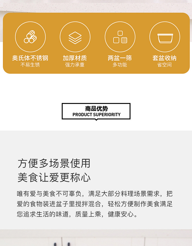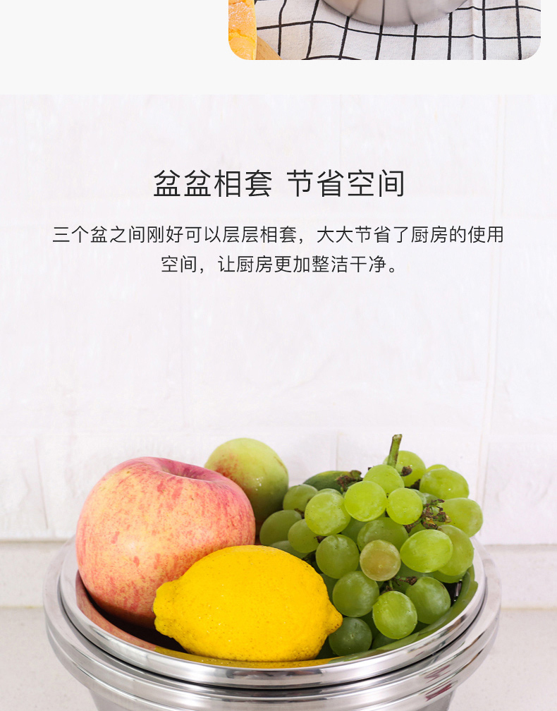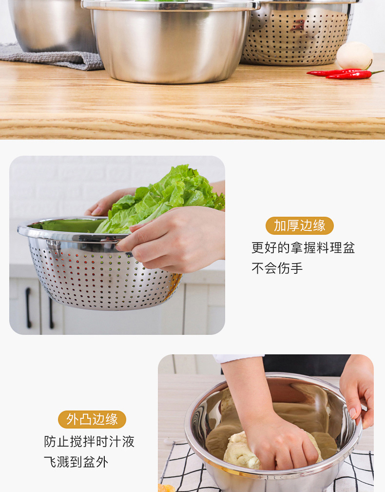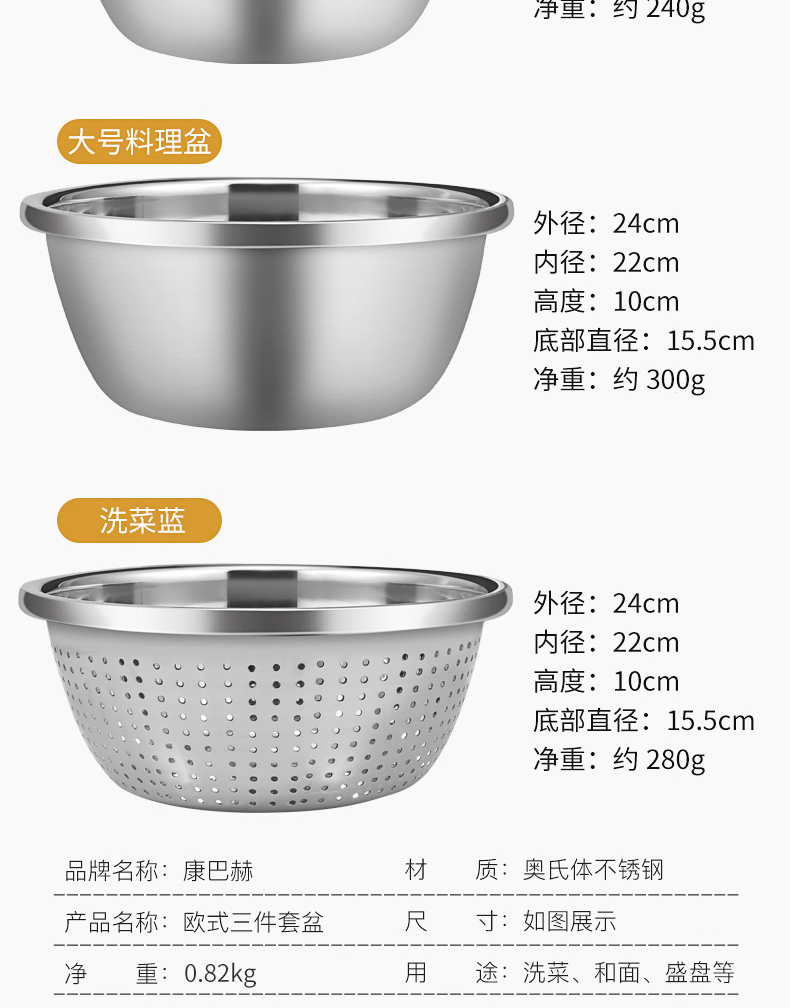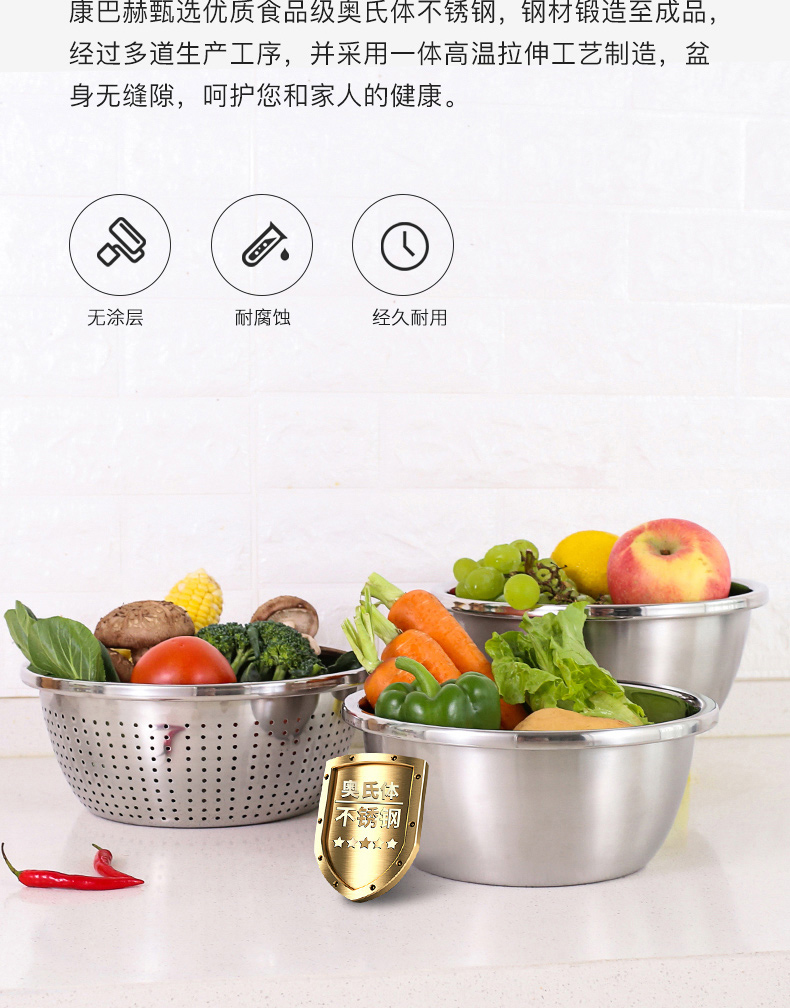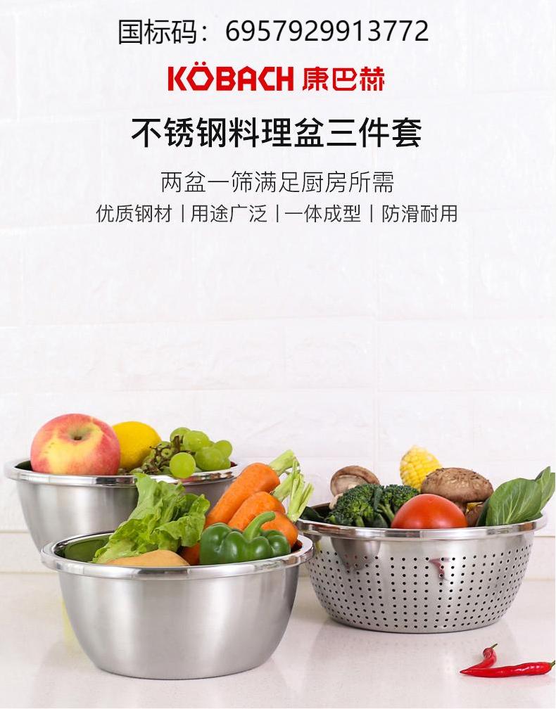 康巴赫(KBH)不锈钢盆筛三件套 KOU3A 【14050055】(单位:套) 不锈钢色