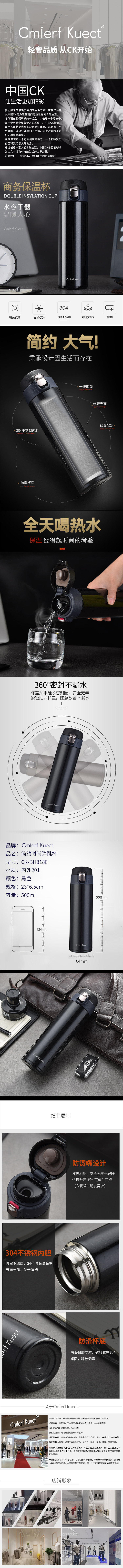 Cmierf Kuect(中国CK)简约时尚弹跳杯3180 单位:个 黑色