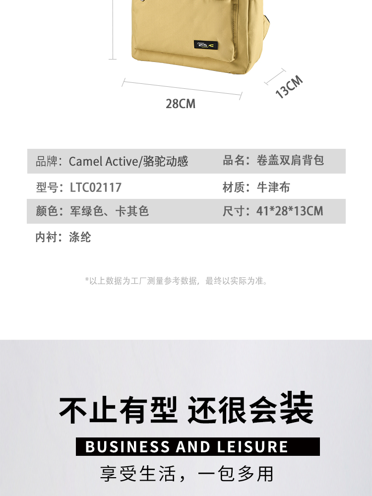 骆驼动感(camel active)慕尼黑-卷盖双肩背包LTC02117 军绿色