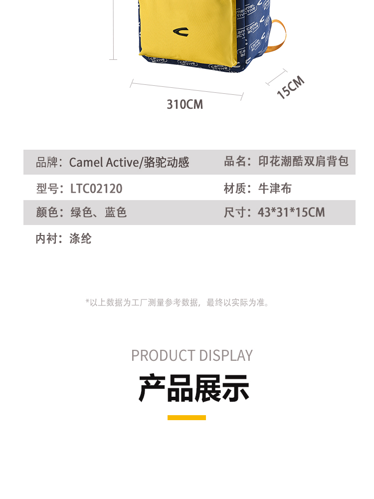 骆驼动感(camel active)巴登-印花潮酷双肩背包LTC02120 绿色