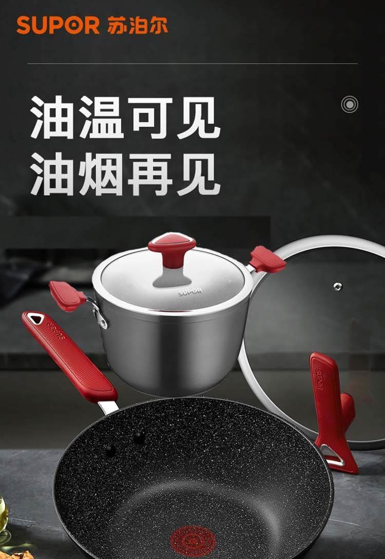 苏泊尔(SUPOR)火红点星星石不粘二件套 30cm炒锅+20cm汤锅 TP21112T(单位:套)黑色 黑色