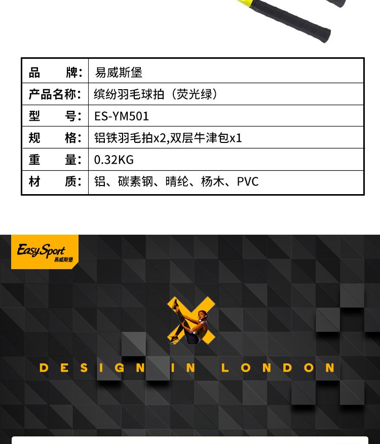 易威斯堡(EasySport)缤纷羽毛球拍套装(荧光绿)ES-YM501 香槟黄