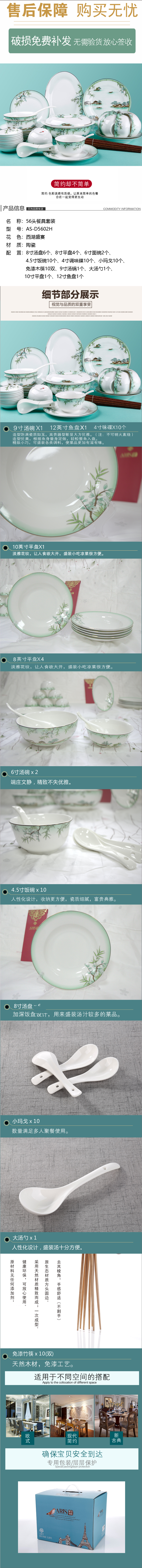 爱依瑞斯ARIS 56头陶瓷餐具组合 西湖盛宴 AS-D5602H
