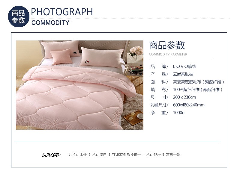 LOVO 云尚亲肤被 VQF2010-1 200*230cm 粉色