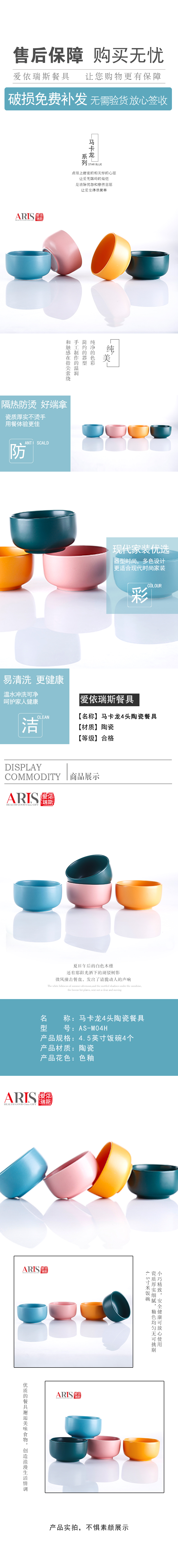 爱依瑞斯ARIS 4头陶瓷餐具组合 马卡龙四色碗 AS-M04H 随机