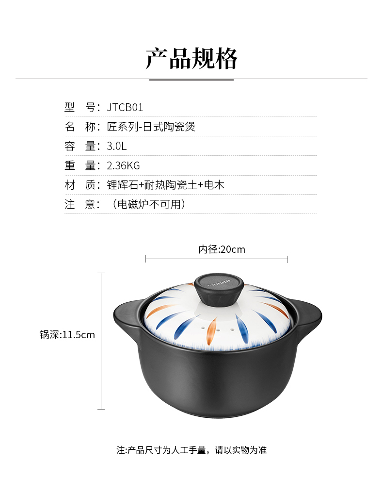 欧美达匠系列-日式陶瓷煲 JTCB01(单位:个) 黑色