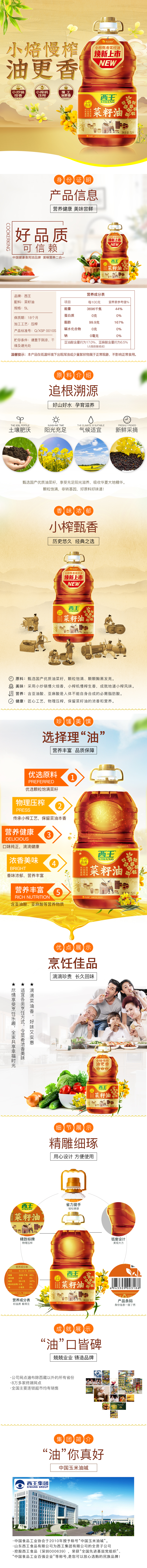 西王小榨甄香菜籽油5升(单位:桶) 黄色